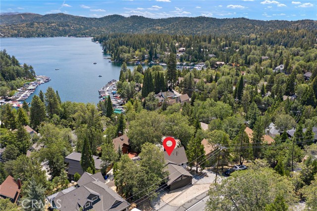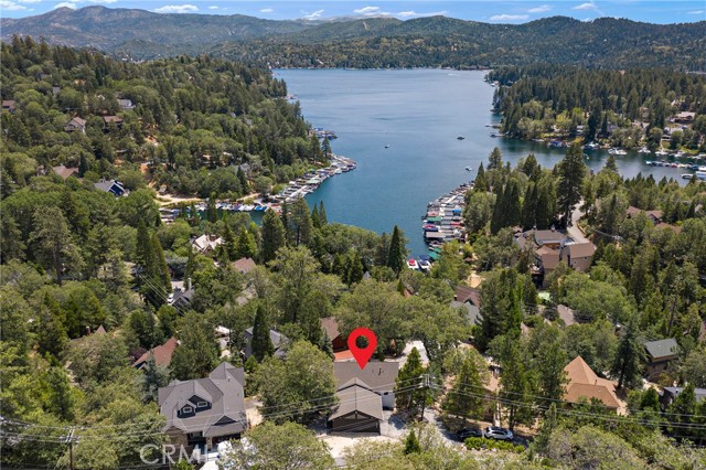This stunning 4-bedroom, 3.5-bath mountain retreat combines modern upgrades with timeless lodge-style charm, offering captivating lake views from nearly every window. Thoughtfully remodeled in 2020-2021, the home features a bright open floor plan perfect for both comfort and entertaining. The main level showcases a dramatic great room with vaulted ceilings, expansive windows, recessed lighting, and a cozy gas fireplace that opens to a large entertainer’s deck. The remodeled kitchen is a chef’s dream with stainless steel appliances including a refrigerator, shaker-style cabinetry, pantry with pullout shelves, granite counters, peninsula with seating, and large windows framing the view. Two primary suites with spa-inspired baths—one on the main level and another on the lower level—provide privacy and flexibility, while two additional bedrooms and a spacious family room with a second fireplace and walk-out access to the lower deck with a swinging bench create the perfect retreat for family and guests. Outdoor living shines with two expansive decks crafted in durable Trek decking, ideal for gatherings, dining, or simply enjoying the mountain air and lake views. Additional highlights include dual HVAC and A/C systems with split thermostats, vinyl flooring throughout, inside laundry with washer and dryer, a finished pull-through two-car garage with automatic doors on both sides, and ample guest parking. Sold fully furnished for a true move-in ready experience, this home is ideally located just above the trails of North Bay Cove with lake rights, peaceful morning walks, sunset strolls, and easy access off Bay Road with level parking. Just minutes from Blue Jay and Lake Arrowhead Village shops and dining, this exceptional property offers the perfect blend of modern amenities, mountain appeal, and lake lifestyle—whether as a primary residence, weekend escape.