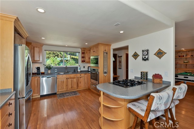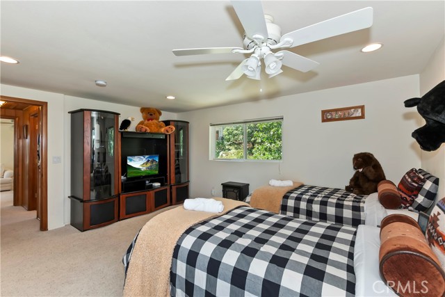 Looking for a GREAT LAKEVIEW mountain home? At a BELOW MARKET PRICE? Look no further -- THIS IS IT !!! ?Wow!?...will be your jaw dropping reaction when you enter this wonderful turnkey A-frame/prow mountain motif home - with LAKE RIGHTS - and see your unobstructed lake view and panoramic ridgetop views, including nearby Snow Valley and San Gorgonio, all from your deck chairs and firepit. This lovely home, with a great "cabin feel" and near level entry, exudes relaxation and fun, from the nearly 1,500 SF of lake view deck space, to the game room with a two in one game table with billiards, and table tennis. Don’t forget the relaxing Jacuzzi spa! The kitchen features hickory cabinets, recently updated stainless steel appliances, and a new LG refrigerator. Relax in the spacious A-frame/prow great room, with terrific lake and mountain views, and enjoy a cozy fire in your Regency airtight wood burning stove. The large master bedroom offers breathtaking views, deck and spa access, a gas insert fireplace for easy fires late at night, and plenty of built-in dresser space, along with a spacious walk-in closet. The master bath boasts a dual sink, a separate walk-in shower and jetted tub, as well as heated floor tiles and a heated towel rack! The additional two large bedrooms upstairs offer more lake views and quiet sitting areas. The main level game room could easily be converted to a fourth bedroom. All three bathrooms have charming, designer touches including mountain themed backsplashes and painted sinks. Be comfortable year-round with central heat and air conditioning. The home also has a laundry and work room, and a concrete and insulated basement for plentiful storage. A short term rental permit has been obtained, and is now a successful, high demand STR. This turnkey unobstructed lake view house at this price point is a rare find on the mountain. Seller is motivated, as evident by the below market pricing. Come see this gem now, and start enjoying the lake lifestyle at its finest!