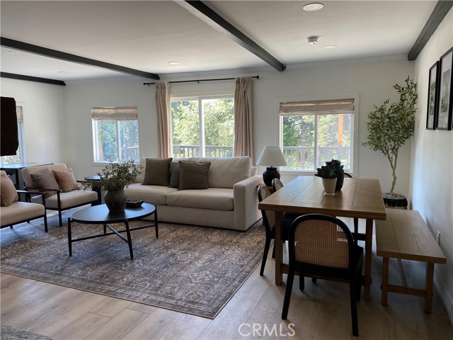 Perfectly positioned across from Lake Arrowhead Village and the lake itself, 27981 Lakes Edge Road offers an exceptional blend of old-world character and contemporary luxury. This stately Tudor-style home stands proudly along Hwy 189/Lakes Edge Road, within the prestigious Arrowhead Woods community—with full lake rights and breathtaking views of the lake and village. Recently renovated, the residence features a brand-new kitchen complete with built-in stainless steel refrigerator, gas range, microwave, wine refrigerator, and a custom coffee station. New luxury vinyl wood flooring, fresh interior paint, remodeled bathrooms, and a new roof provide peace of mind and modern appeal. The home offers 4 bedrooms, 4.5 bathrooms, consisting of two inviting master suites, a cozy loft, and a charming ADU—ideal for guests or additional income. Enjoy the warmth of the stone fireplace or step onto the spacious balcony to sip your morning coffee while overlooking the serene lake setting. Thoughtfully designed for convenience, the property offers dual access points, private security gating, and rare parking for 6–8 vehicles. Central air conditioning ensures year-round comfort, while the tranquil mountain surroundings make this an ideal retreat from city life.Located just steps from the newly renovated Lake Arrowhead Resort and Spa—Southern California’s first member of Marriott’s Autograph Collection—you’ll have immediate access to fine dining, boutique shopping, and year-round outdoor adventures from boating and fishing to hiking and skiing. Whether as a full-time residence or mountain getaway, this home offers a warm, inviting escape where timeless architecture meets modern mountain living.