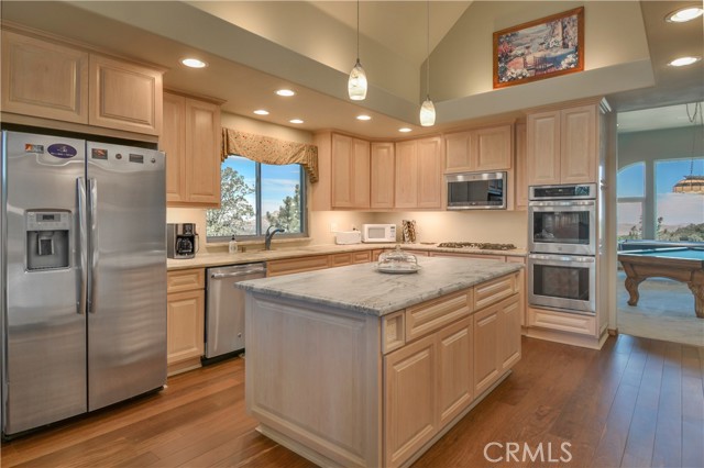 Spacious 4 bedroom, 3 bath home with high ceilings and panoramic views including lake, mountains, Pinnacles and high desert city lights at night. Remodeled kitchen. Newer wood floors with a 100 year warranty. Newer carpeting. Fire resistant acrylic stucco and exterior stonework. Newer windows and roof. Game room. Relax and entertain on the large outdoor deck and take in the spectacular sunset views. Attached double garage. Wonderful feeling of privacy and openess. Two 50 gallon water heaters. Surround sound system. Central vacuum. Furnishings available.