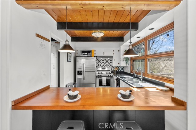 In the heart of the Palisades community, this multi-level cabin is a true masterpiece designed to embrace the beauty of nature. From the moment you enter, you’ll be greeted by rich wood, high ceilings, and striking black accent beams. The bold black fireplace serves as a stunning focal point in the living room, creating the perfect ambiance for cozy evenings or entertaining guests. The kitchen will instantly capture your attention with its pristine white cabinetry, sleek backsplash, and thoughtful layout. Whether you're preparing a meal or enjoying a quiet morning coffee, the breathtaking view of the surrounding nature will always be in sight. The entry level is as functional as it is stylish, featuring a full bathroom with a striking design. The shower, adorned with vertical white tiles and a bold black octagonal floor, elevates the space and offers a spa-like retreat after a day spent outdoors. Your guests will appreciate the convenience of having everything easily accessible on this main floor, where elegance meets practicality. On the upper level, the bedroom boasts soaring ceilings and breathtaking nature views, making you feel completely immersed in the natural beauty that surrounds you. The upper-level half-bathroom features playful and chic tile flooring, adding a touch of charm. The lower level presents the ultimate primary suite—a true sanctuary. With two sets of double doors leading to your private deck, this room is the ideal space to breathe in the crisp mountain air during a morning yoga session or evening meditation. The ensuite bathroom features a spacious shower with a generous caddy area, a freestanding bathtub with a striking black faucet and tub wand, and a double vanity with wall-mounted black faucets providing ample space for all your essentials. A second bedroom on this level adds to the inviting atmosphere, making it a perfect retreat for guests. A private laundry area enhances the home’s convenience. This cabin offers unbeatable outdoor living, with a welcoming front deck and a wraparound design that leads to two additional decks at the rear. Whether you’re entertaining guests or seeking solitude, the property’s layout provides plenty of space to take in the breathtaking nature views. Incorporate this breathtaking property into your portfolio and embrace a lifestyle with full lake rights, where every day feels like a getaway.