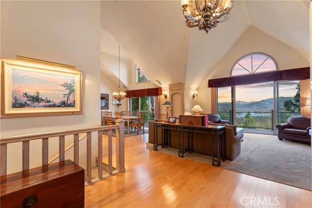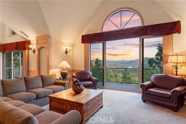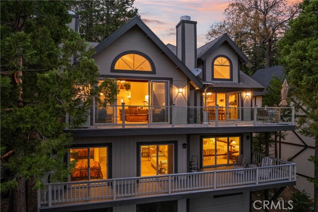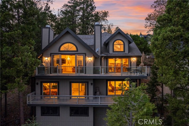Arguably one the of the best, unobstructed panoramic LAKEVIEWS in all Lake Arrowhead!! Truly a special opportunity to acquire a piece of property which is located in a unique setting boasting unparalleled views of the majority of Lake Arrowhead and Eastern ridgeline. Well maintained and first time on market since 1993. Located on a very low traffic road, this setting is perfect for kids or grandkids to play out front without the worry of cars passing by. Full lake rights and conveniently located less than 10 mins to Blue Jay, Grass Valley Park and County Club, this 3,365 sq ft 4 bedroom/2.5 bathroom offers a spacious open floorplan perfect for family gatherings. Upon level entry from the garage, feel the weight lifted off your shoulders when you see the incredible view through large living room sliding doors. High quality solid wood flooring and finish carpentry wainscoting throughout the entry level. A remodeled kitchen is a chefs dream offering a high end Thermador range/hood, 2 ovens and microwave. Stainless double door Kitchen Aid fridge and Bosch dishwasher. Granite counter tops, custom tiled backsplash and 3 stool breakfast bar complete the kitchen. Upper level(over the garage) offers a 20’x32’ billiards room equipped with a full wet bar and card table loft area overlooking the dining room below. The vaulted ceiling living room leads directly onto a 35 ft wide Trex deck perfect for morning coffee sunrises and evening BBQs. Downstairs hosts a primary en suite bedroom with cozy stone wood burning fireplace and double closets. Pamper yourself in the attached bathroom with oversized soaking tub, walk in shower, and double sink vanity with granite counter top. 3 spacious guest bedrooms, remodeled full bathroom, and full size laundry room complete the lower level. Relax in comfort with forced heating and A/C on all levels. There’s more! Lowest level unfinished basement can be converted into a full guest apartment, gym or home office if desired. What makes this property so special is it receives just the right amount of natural light while nestled in a evergreen tree forest. Plenty of sunlight in the morning and afternoon and just the right amount of shade in the evenings when relaxing on the rear deck. If you are a discerning lakeview buyer that has been patiently waiting for the right property, it has arrived! Shown by appointment only.