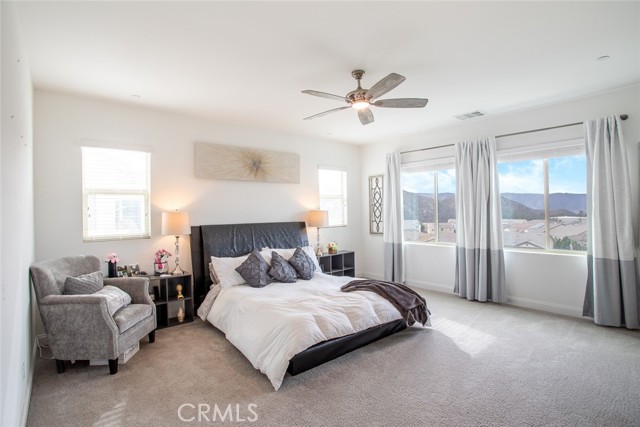 Stunning View home and the largest floorplan in the gated and highly desired Westridge community of Canyon Hills! Built in 2018, this 3,254 square foot upgraded home features: 4 Bedrooms, 3 Full Bathrooms + an expansive LOFT + TWO office/study rooms (one of which could be an optional bedroom)! As you enter you will find lots of natural light and stunning canyon views which make the home feel even MORE open. This floorplan feels very spacious with its open concept design which make every day living AND entertaining a breeze. Chefs kitchen features enormous kitchen island with plenty of seating, tons of counterspace and storage, stainless appliances and a walk-in pantry! Downstairs bedroom has a convenient nearby full bathroom. Also, downstairs is a office / study room which offers privacy away from the main living areas. Up the modern metal + wood staircase you will find the spacious loft which has endless ideas: movie room, play area, lounge area etc.! Off of the loft area is a small room that can be used as an office/den/opt bedroom. This floorplan offers a LARGE laundry room with plenty of storage as well as a Quiet Cool system upstairs. Master suite features amazing views and an expansive master bathroom with full tub, shower, his & her sinks as well as his & her closets! Convenient 3-Car garage with lots of storage. Energy efficient solar home. Backyard features stucco covered patio with LED lighting for outdoor dining, and a generously sized concrete patio for BBQs and outdoor living. Watch the Canyon Lake fireworks on the 4th of July while entertaining friends & family. This community offers a well-maintained pool & spa, walkable dog park, basketball court, and a fun outdoor playground. With lots of shopping and dining nearby as well as the 15 frwy which is convenient for work and travel, this home is a must see!