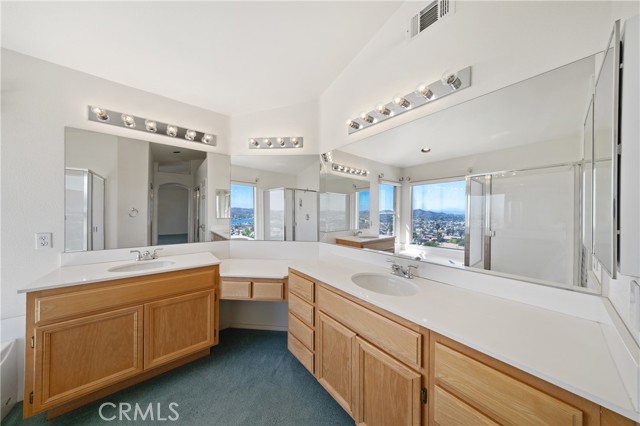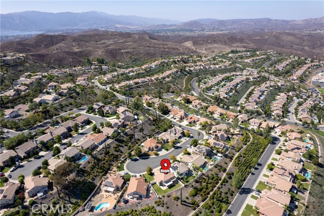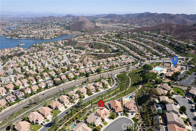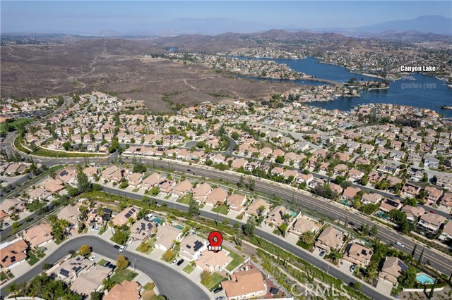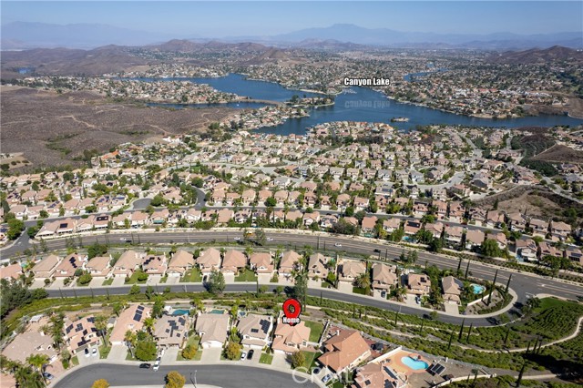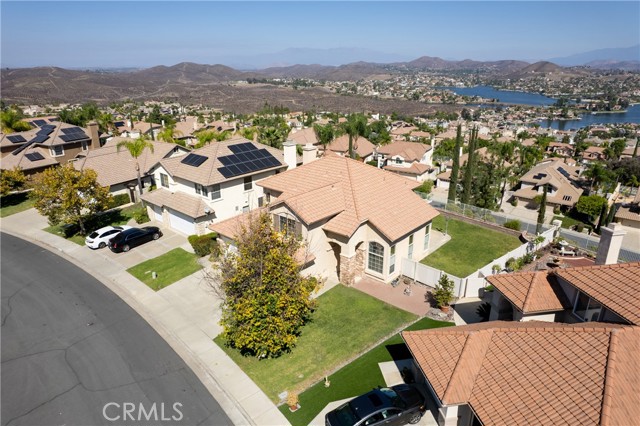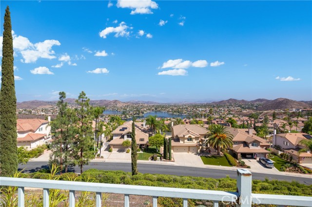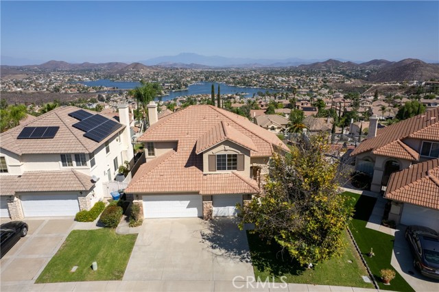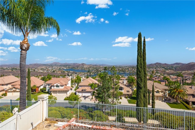 Perched on over ¼ acre in a serene Lake Elsinore cul-de-sac, this stunning 3 bed, 3 bath, 2,153 sq ft home offers sweeping, unobstructed views of Canyon Lake and the valley—truly a rare gem. With soaring ceilings, an inviting fireplace in the family room, a spacious main-floor bedroom, and an oversized primary suite with a private view balcony, this home effortlessly blends comfort, elegance, and California living at its finest. Step inside to discover a bright, open layout designed for both relaxation and entertaining. The beautifully appointed kitchen flows seamlessly into the living areas, while large windows flood the space with natural light and capture breathtaking vistas from nearly every room. Upstairs, the generous secondary bedroom offers flexibility for guests, a home office, or additional family space. Outside, the professionally landscaped yard provides the perfect backdrop for morning coffee, sunset dinners, or simply soaking in the peaceful surroundings. Complete with a 2-car garage and situated in a quiet, well-maintained neighborhood—this is the lifestyle upgrade you've been waiting for.