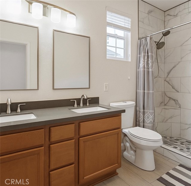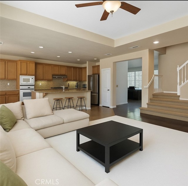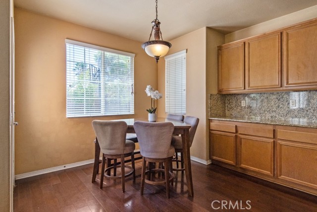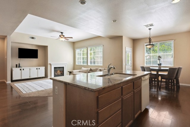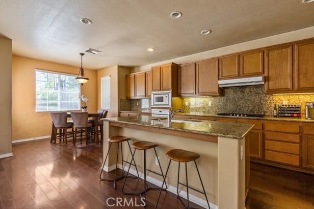 Luxurious and spacious, this 5-bedroom, 3-bath home is ideally located in the highly desirable Rosetta Canyon community—just minutes from shopping, dining, and I-15 for convenient commuting. Enter inside to soaring 11-foot ceilings, rich wood flooring, and an oversized granite island kitchen featuring upgraded cabinetry and a seamless flow into the open-concept family room—perfect for everyday living and entertaining. The first floor is designed to be wheelchair accessible, featuring a level entry, plus a large downstairs bedroom, and a full bath with a walk-in shower—ideal for guests or multigenerational living. Upstairs, retreat to an expansive primary suite with a spa-like en-suite bath, while generously sized secondary bedrooms offer ample space and natural light. The large backyard with stamped concrete is ready for outdoor enjoyment, and a 3-car garage provides plenty of storage. Located near Earl Warren Elementary, Elsinore Middle school and Temescal Canyon high school, and surrounded by resort-style community amenities including parks, athletic fields, tennis and basketball courts, BBQ areas, a dog park, and a scenic lake—this home truly has it all.