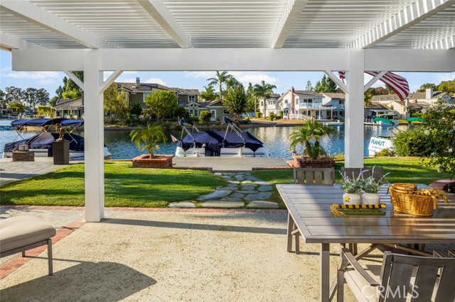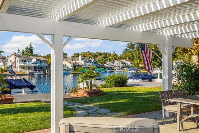 If America was a house, it might look something like this. Nestled along the tranquil edge of the Lake Forest Keys, this lakefront home captures the essence of laid-back all-American living, with a polished yet timeless sensibility. Designed to feel both grounded and elevated, the home leans into a warm palette of deep reds, crisp whites, natural woods, and aged metals, offering an atmosphere that feels classic without being nostalgic, and styled without ever feeling forced. Inside, the layout unfolds gently, with the living room, kitchen, and dining spaces seamlessly connected and oriented to take full advantage of the water views. At its heart, the living area centers around a fireplace framed by large windows, where sunlight plays off the ever-changing reflections of the lake outside. The kitchen, both functional and welcoming, features shaker cabinetry, stone countertops, and a large breakfast bar that invites casual conversation or weekend breakfasts with family. It’s a space that feels lived-in, loved, and ready for both slow mornings and spontaneous gatherings. Outdoors, the experience continues with a generous patio that leads to a private dock, your front-row seat to everything the lake has to offer. From sunlit mornings to lantern-lit nights, this is a place designed for gathering, unwinding, and simply being present. Upstairs, each bedroom carries its own quiet charm, tied together by a cohesive design thread of comfort and classic finishes. The primary suite offers sweeping views of the lake, and the gentle rhythm of the water becomes part of the everyday routine. Throughout, thoughtful details like custom wooden shutters, soft lighting, and heritage-inspired accents create a sense of ease and familiarity. Rooted in tradition but designed for modern life, this home is more than just a residence, it’s an embodiment of comfort, character, and the quiet luxury of lakeside living in one of Orange County’s most beloved communities.