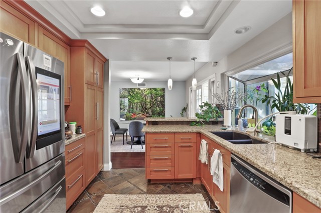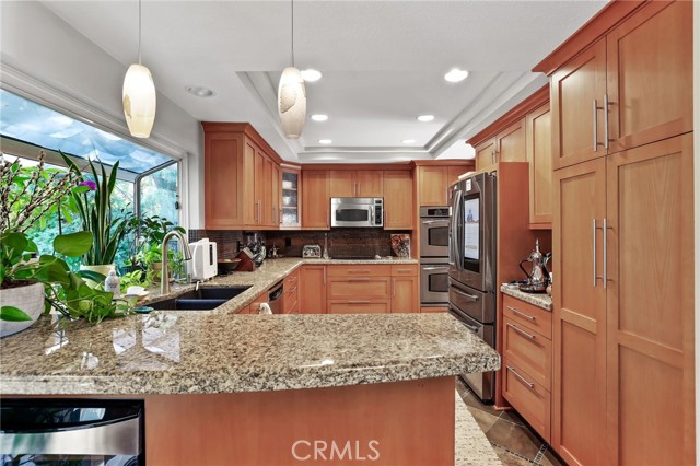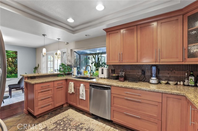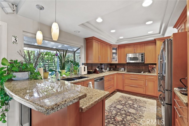 Live the good life along the Aliso Creek Greenbelt in this beautifully updated 3 bedroom, 2 bathroom, 1,499 sqft single-story home. Enjoy peaceful greenbelt views with no neighbors behind you — just mature shade trees, open space, and direct access to miles of bike and running trails. Over $250,000 in upgrades have been invested throughout (full list available). The kitchen has been tastefully remodeled equipped with a full collection of stainless steel appliances including an electric stove top top, double oven, stove top microwave oven, dishwasher and a Smart Refrigerator with built in TV/Monitor and don't forget the built in wine cooler ready to serve your guests the best of beverages. Each bathroom has been remodeled with an exquisite touch including an array of earth tones and combination of tile, stone and quartz. The home boasts abundant storage space — both inside the home and in the spacious garage, with additional driveway parking. It is an Entertainers delight indeed with not only a spacious enclosed patio but also an adjacent relaxing covered patio where you can lounge and mingle. Nestled on a quiet, tree-lined street, this home is truly move-in ready and exceptionally maintained. Take advantage of this Rare opportunity to own on this part of the Aliso Creek Greenbelt — homes like this do not last long. Bring your most selective buyers!