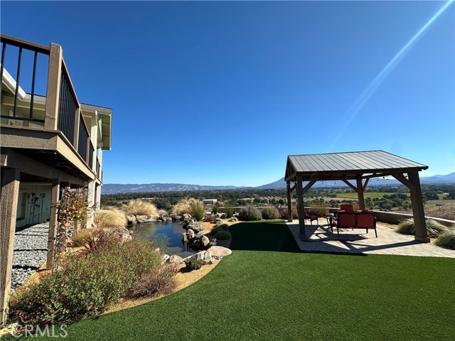 Welcome to this high efficiency two-story single-family residence set on 6.7 acres, offering space, privacy, and beautiful natural surroundings. The main level opens with a formal entry featuring neutral tile flooring, a coat closet, and a convenient laundry closet. From there, the home transitions into a formal dining area with pastoral views filtering in through picture windows. A bright open-concept living and kitchen area with hardwood floors, a great wood burning stove to keep you cozy during the winter. Plus a full bathroom with shower over tub, and access to a wraparound deck showcasing sweeping views of Lakeport, Mount Konocti and the Mayacama Mountains. A guest bedroom is also located on this level, offering direct deck access and incredible sunrise views over the lake and surrounding hills. The backyard is designed for year-round enjoyment, with a natural dipping pond and a pergola-covered, seating area—ideal for cooling off in the summer or enjoying a bonfire during the cooler months. Upstairs, the spacious primary suite features a private balcony with vantage point views of the lake and vineyards, walk-in closet, double vanity, and a large tiled walk-in shower. Located directly below the suite, the oversized two-car garage features a workbench, and a large picture window that fills the space with natural light and frames a stunning lake view. Additional features include a whole house automatic generator, a detached carport suitable for larger equipment or vehicles, and an unfinished basement with full standing height—perfect for extra storage or seasonal decorations/items. This unique property is specially beautiful during springtime with an abundance of California poppies and wildflowers throughout. Designed to be enjoyed year round with specific features to be enjoyed through the seasons and high energy efficiency due to great insulation provided. Truly a must see!