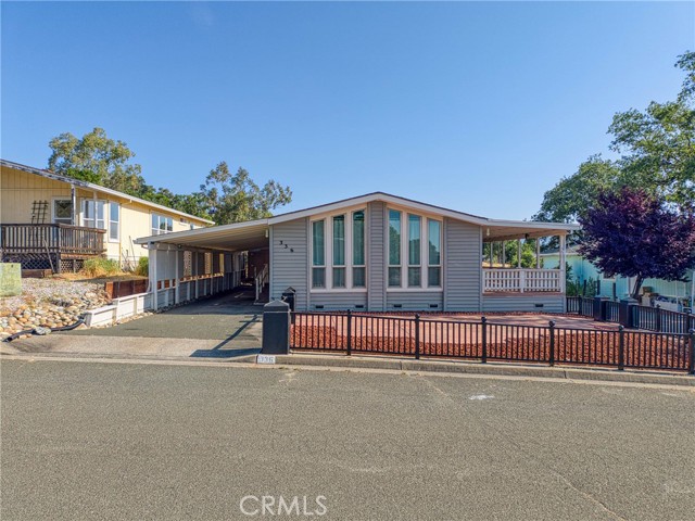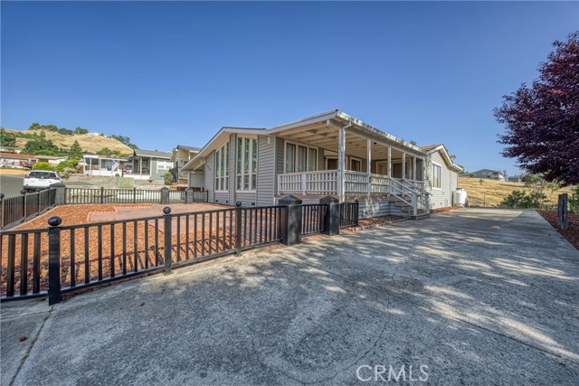 Beautiful 1850 Sq. ft home nestled in the desirable Walnut Estates. This lovely property offers exceptional parking convenience with two driveways flanking the house. A striking front patio, enclosed by an elegant black wrought iron fence, welcomes you. Step inside to discover a bright and open floor plan bathed in natural light. The spacious front living room and family room seamlessly connect and flow out to a charming covered deck, where you can enjoy a partial view of the lake. Kitchen, features a propane range, dishwasher, pantry, and a convenient pass-through that overlooks the formal dining area. A breakfast bar provides a casual dining alternative. The interior laundry room also serves as an access point to the hall bathroom, which includes a walk-in shower. Additionally, the first bedroom offers direct access to this hall bath. The generously sized primary bedroom boasts a large walk-in closet and a separate makeup/dressing room. The en-suite bathroom provides a relaxing retreat with both a walk-in shower and a soaking tub, all while offering a pleasant view of the open space behind the property. For year-round comfort, the home is equipped with central heating and air conditioning, along with a monitor heater for supplemental warmth. Ample parking is available with covered parking on one side, complete with a storage shed, and additional open, flat parking on the other side. This wonderful home's location is a true highlight, situated close to the lake, offering endless opportunities for year-round water sports, fishing, and outdoor adventures. The vibrant Lakeport community also offers an active lifestyle with a variety of local events.