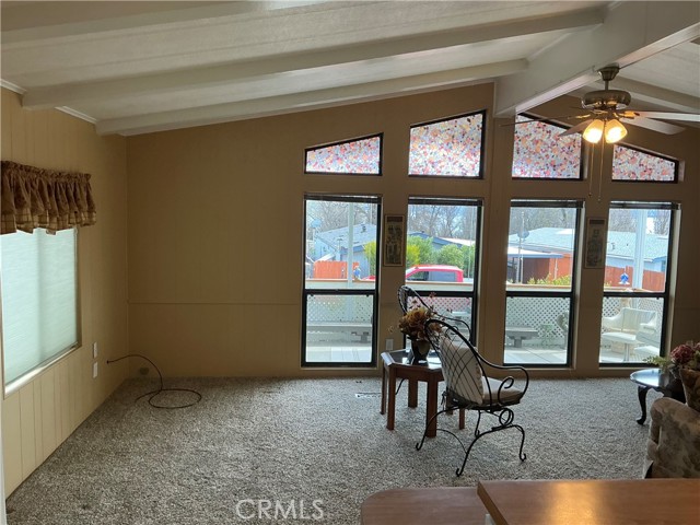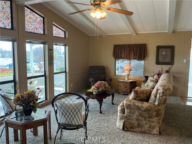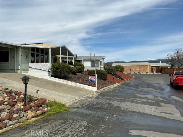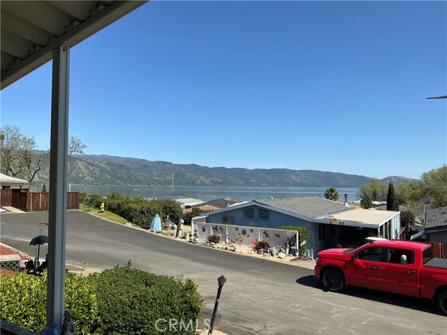 Enjoy sitting on the covered front porch looking at the lake and rural mountains of lake county. This two bed, two bath, living and dining room, cozy kitchen sits quietly uphill from the road. Room to garden with a simple raised bed and clean graveled area. Keep things tidy in the garden shed and build a bird house in the small workshop off the carport. On demand water heater, high rise toilets, newer washer & dryer and central heat & air. High ceilings with ceiling fans keeps the clean air circulating. Non smokers home is light and bright. Access to club pool, pier, dock and boat launch. Wait! There's more...enjoy community dinners, coffee/donut social hour, the walking club and bunko games. A Place to park the RV, boat or other recreational things. Park approval and application required.