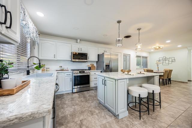 Welcome to 13351 Scotsman Road, a beautifully updated and renovated 4 bedroom, 3 bath home with over 1,700 sq ft of living space, tucked away on a very quiet street in Lakeside. Fully renovated inside and out, this home blends modern finishes with everyday convenience. The chef-inspired kitchen features new quartz countertops, an expanded pantry with motion-detection lighting, and extra electrical outlets to keep all your appliances powered. The open layout flows seamlessly into the dining and living areas, ideal for entertaining and family gatherings. The spacious master suite includes a versatile bonus room perfect for a home office, gym, or yoga studio. Outside, enjoy a sparkling pool, new deck, large open area, perfect for adding grass or chicken coup, and patio space designed for year-round fun! With Lakeview Elementary directly behind the property, walking the kids to and from school is a breeze. Additional highlights include solar, upgraded 220 amp panel with 220 amp outlets, split AC system in garage, perfect for a home gym, man cave or she-shed, ample storage, generous parking, and a garage finished with epoxy flooring. Plus, enjoy easy access to both El Capitan and Lake Jennings reservoirs, offering endless opportunities for fishing, boating, and outdoor recreation just minutes from your doorstep. This is a true move-in-ready Lakeside gem—don’t miss it!