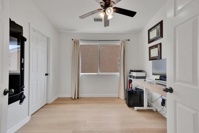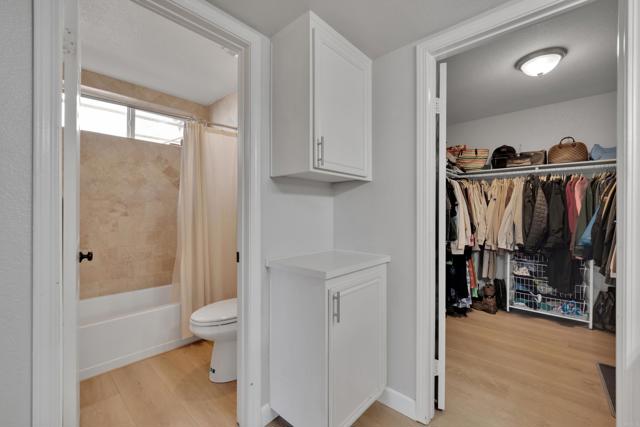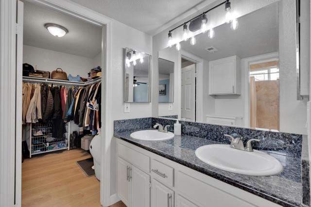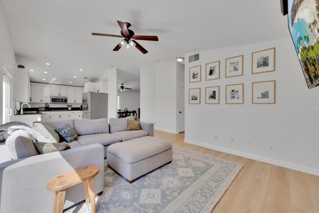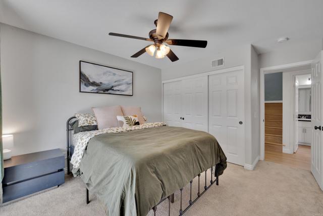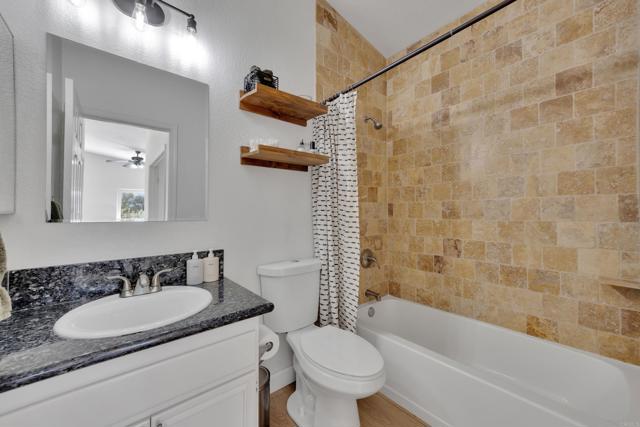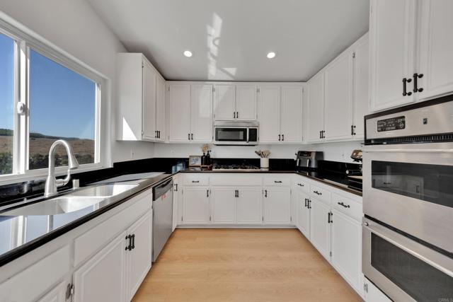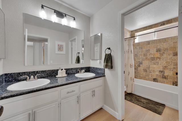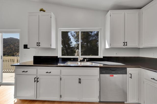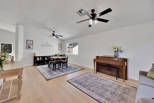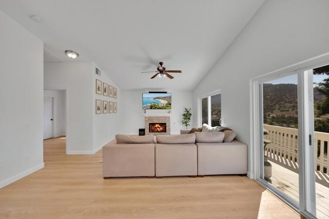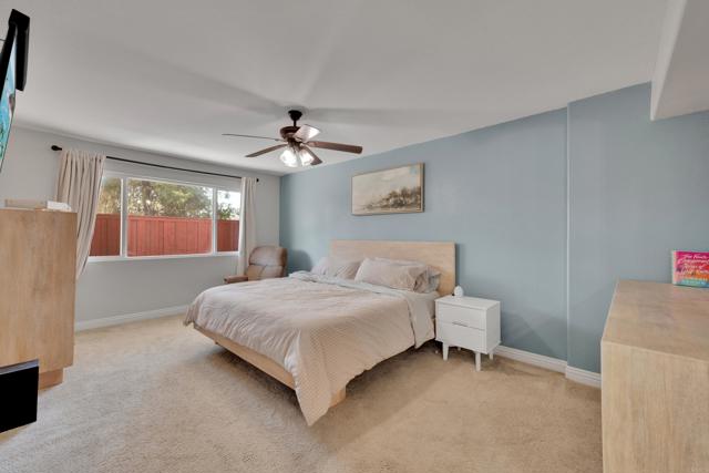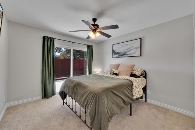 This home is loaded with modern upgrades, including newer laminate flooring throughout the living areas, a Vivint smart home system, energy-efficient solar panels, and a NEMA 14-50 EV charging outlet—perfect for electric vehicle owners. Step inside to a bright and airy main floor, featuring a spacious Living Room with vaulted ceilings that create an inviting ambiance. Adjacent to the Living Room is the open-concept kitchen and Family Room which provide the perfect space for entertaining or relaxing with loved ones, all while enjoying picturesque views of the surrounding hills. Just off the Family Room, step out onto a large deck that takes full advantage of the views. The kitchen features granite countertops, stainless appliances, and ample space for all your culinary adventures. A main-floor bedroom and full bathroom offer flexibility for guests, a home office, or multi-generational living. Downstairs, you'll find three generously sized bedrooms and two full bathrooms, including a primary suite complete with a large walk-in closet and a private ensuite bathroom. Each bedroom is oversized, providing a comfortable and relaxing retreat for all. The lower level also opens to a covered patio and fenced backyard, offering additional outdoor living space perfect for gatherings, play, or relaxation. Located on a private Cul-De-Sac just minutes from Lake Jennings, freeway access, and endless recreational opportunities, and approximately 30 minutes to both beaches and mountains, this home offers both convenience and an exceptional quality of life.