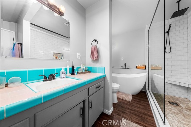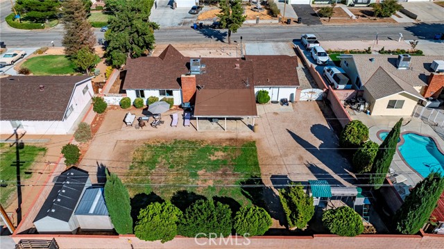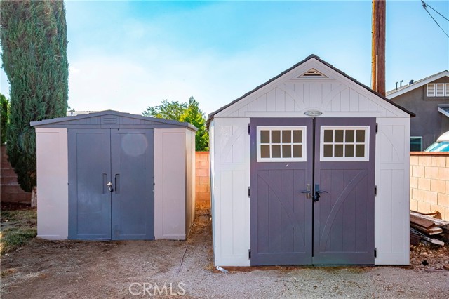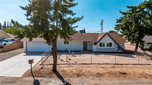 This charming 3 bedroom, 2 bathroom home is nestled in West Lancaster, just a stone's throw away from downtown Quartz Hill. With a spacious 12,409 square foot lot, it boasts unique architectural character featuring scallop-etched eaves, a 2 car attached garage, and fencing in the front yard. Upon entering, you'll be greeted by an open floor plan, neutral color paint, and finished ceilings. Upgraded features include a newer HVAC system, windows, laminate flooring, and ceiling fans throughout. The spacious family room features recessed lighting and a fireplace perfect for chilly evenings. The dining room features recessed lighting, French doors that lead to the backyard, and space for entertaining guests or everyday use. The kitchen has been remodeled with high-end Corian countertops and backsplash, a farmhouse sink, stainless steel appliances(refrigerator included), custom-built cabinets for all your storage needs, and an island. The guest bathroom is conveniently located in the hallway, and all three bedrooms are at the end of the hall. The primary bedroom features a large closet with custom barn doors, while the primary bathroom boasts an oversized shower with custom tile and bench seats, as well as an oval freestanding soaking tub. Step outside to enjoy the fully covered patio and an additional paver patio area. The exterior block walls, mature trees, and shrubs provide a lovely privacy feature, and the two sheds offer ample storage. RV access is also an added perk. This ranch-style community is conveniently located near grocery stores, coffee shops, restaurants, and other amenities, including an elementary school and park. Make this home yours for the holidays!