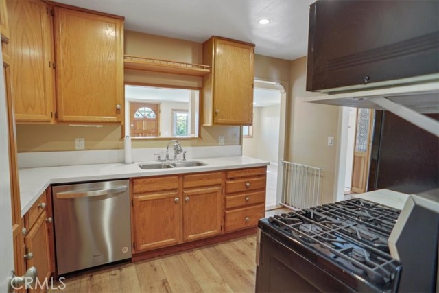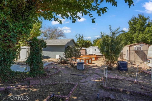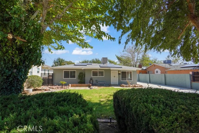 Amazing 3 Bedroom Gated Home on a Large 12,453 Sq. Ft. Lot with Paid Solar! This beautifully maintained home shines with fresh neutral paint and laminate flooring, offering a comfortable floor plan ideal for everyday living. The spacious living room flows seamlessly into the dining area, highlighted by ceiling fans and custom molding. The remodeled kitchen boasts quartz countertops, stainless steel appliances, a five-burner gas range, and built-in microwave. The upgraded bathroom features a custom tile enclosure, newer vanity, and modern fixtures. Each bedroom includes ceiling fans and distinctive woodwork. The property’s curb appeal stands out with electric gates and a fully landscaped front yard, while the expansive side yard provides ample RV access. A large enclosed patio (approx. 14x18) creates the feel of a family room extension. Outdoors, enjoy a backyard with grass, concrete patio space, and an above-ground spa. Gardening enthusiasts will love the raised planter beds and fruit trees. Additional improvements include a detached two-car garage—ideal for potential ADU conversion—and even a camper trailer converted into a portable office, included with the sale. This home truly offers space, versatility, and opportunity. Don’t let this fantastic property pass you by!