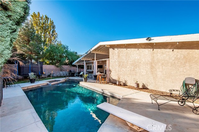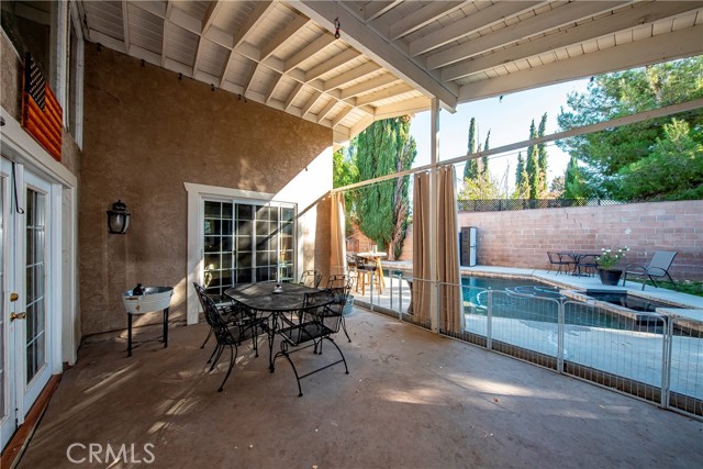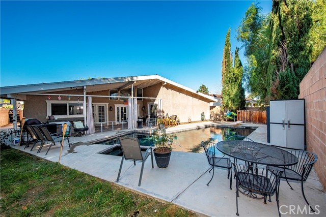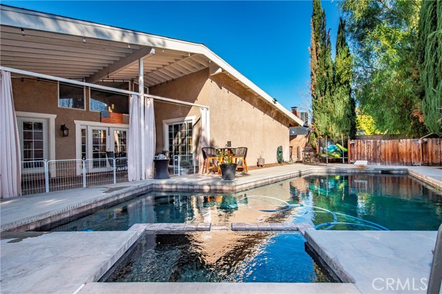 Beautifully remodeled pool/spa home waiting for your family! Welcome to this lovely home located in a wonderful neighborhood. The family room has a cozy fireplace with custom shelving, crown molding and French Doors out to the patio. The kitchen has newer granite countertops, a spacious island and modern updates for cooking and entertaining. All bedrooms are very spacious including the master. The master provides 2 closets and French Doors leading out to the pool. The entire house has newer flooring and the living area and kitchen has newer paint. The pool and spa are perfect for outdoor entertaining including a covered patio and wrap around bar. There is a new pool heater and new Pebble Tek finish in the pool. The pool upgrades alone are more than $17K! There is a solar purchase that is easily transferrable. $127 per month. This is NOT a lease. This is a must see. Welcome Home!
