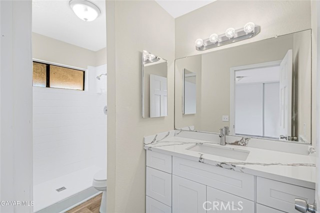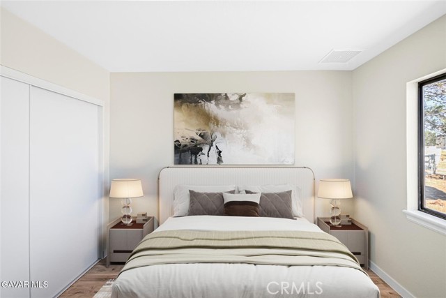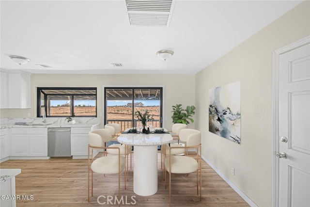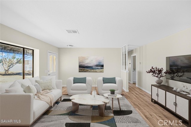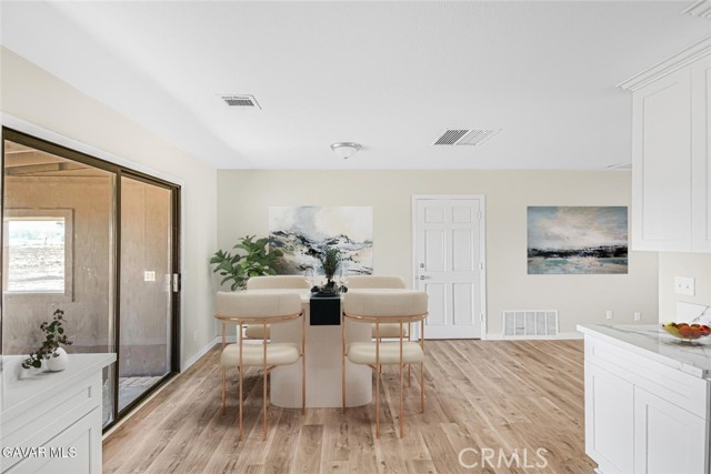 This beautifully renovated property is move-in ready with fresh interior and exterior paint that gives it a crisp, modern feel. The heart of the home is the brand-new kitchen, featuring completely new cabinets and countertops, new stainless steel appliances, a new sink and faucet with garbage disposal, and a convenient small walk-in pantry. The dining area sits right off the kitchen, creating a seamless flow for everyday living and entertaining. Throughout the home, you'll find brand-new vinyl plank flooring, upgraded light fixtures, and new plumbing fixtures. The master bedroom includes a private slider to the back patio and an ensuite with a new vanity, toilet, and a newly glazed walk-in shower. The guest bath has also been completely redone with a dual-sink vanity, new fixtures, toilet, and a re-glazed tub/shower combo. Additional features include a cozy gas fireplace, laundry in the two-car garage, and a new swamp cooler on the roof. Outside, the large lot has been fully cleaned and offers horse corrals, a tack shed, and a fully fenced backyard with a huge covered patio and built-in BBQ—perfect for gatherings. The flat, fully usable 2.1-acre property provides plenty of room for all your needs and has the added convenience of paved road access. Located in an excellent area with no long dirt roads to navigate, this is a rare offering that combines modern upgrades with land and usability. Come see this incredible property today.