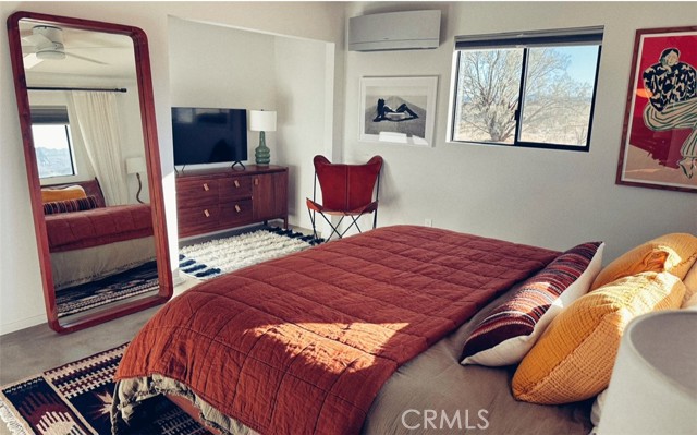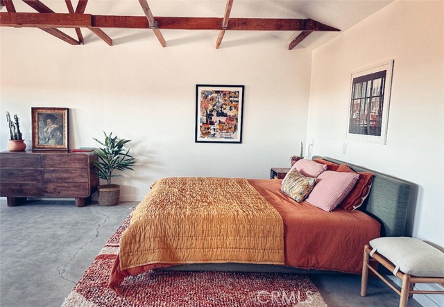 Exquisitely Renovated 3 Bedroom 2 Bathroom Home on 5 Acres with Mountain Views and Pool Welcome to your High Desert haven! This beautifully remodeled 3-bedroom, 2-bath retreat, that also features a bonus, and private, casita, that sets on a 5 fully fenced acres of pristine native landscape, offers stunning views of Goat Mountain and the surrounding desert. Enjoy unmatched peace and privacy just minutes from La Copine, Pioneertown, and the Integratron. As you step inside, you are greeted by an open floor plan filled with natural light, creating an airy atmosphere that flows seamlessly throughout the home. The modern concrete flooring and custom double door entry lead you into a stylish living room featuring a cozy masonry fireplace and custom light fixtures, perfect for relaxation or entertaining. The large gourmet kitchen is a chef's dream, showcasing butcher block countertops, pendant lighting, stunning modern cabinetry, and a galley sink equipped with all appliances. Designed with entertaining in mind, this kitchen opens up to the living area, allowing you to prepare your favorite meals while staying engaged with your guests. The renovated guest bathroom is a true standout, featuring beautiful retro tile, a walk-in shower with a stylish backsplash, a concrete vanity with a square molded sink, and custom mirrors. Each spacious guest bedroom offers breathtaking views, ceiling fans for comfort, tasteful mirrors, and individual mini-splits for efficient heating and cooling. The primary suite is a tranquil retreat, flooded with natural light from dual-pane windows. It includes a private bathroom with a large walk-in retro tile shower, a block wood vanity, an upgraded sink, and a chic mirror. A bonus Casita adds even more versatility to the property, boasting stunning open beam ceilings and concrete flooring, making it an ideal space for a yoga studio, music studio, art studio, home office, or whatever your imagination desires. Step outside to discover your own private oasis. A privacy fence wraps around the gorgeous modern pool, complete with a remote control covering system. This backyard area is perfect for hosting barbecues, gatherings, or simply enjoying a refreshing dip under the stars. With so many features to explore, this property truly needs to be seen to be appreciated. Call today for your private showing and experience modern desert living—effortlessly stylish, endlessly peaceful, and full of potential—before it’s gone!