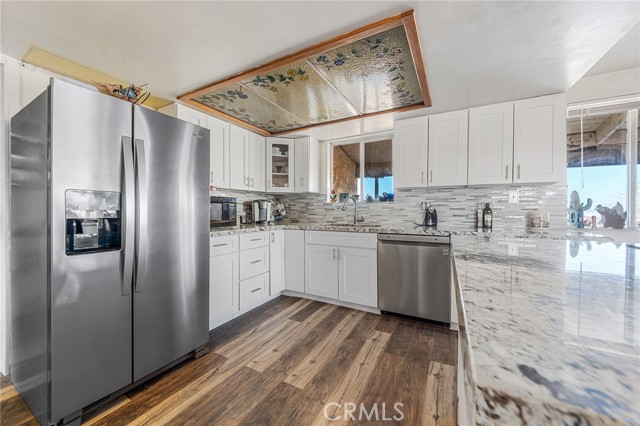 Desert Beauty on 5 Scenic Acres – Updated 2 Bed, 2.5 Bath Home with Loft & Views Discover your perfect desert escape in Landers! Set on 5 expansive and scenic acres, this beautifully updated 2-bedroom, 2.5-bath home blends modern comforts with wide-open space and panoramic views in every direction. Take in the dark skies from the swim spa and after, snuggle up next to the warmth of the fire-pit. Step inside to a stunning kitchen with granite countertops, stainless steel appliances, and a large center island—ideal for cooking, entertaining, or simply enjoying the peaceful surroundings. The kitchen flows effortlessly into a cozy living room, where a warm fireplace creates a welcoming atmosphere. The primary suite is a true retreat, featuring floor-to-ceiling cabinetry, a stylish barn door leading to the en-suite, a luxurious soaking tub, and ample storage throughout. Upstairs, the spacious loft serves as a second bedroom or creative space, complete with its own private bathroom and access to a large deck offering sweeping views of the high desert landscape. An oversized two-car garage with high ceilings provides plenty of room for parking, storage, or a workshop. Major updates including the HVAC system, roof, drywall, and more mean peace of mind and move-in readiness. Whether you’re looking for a full-time residence, a weekend retreat, or a potential investment opportunity, this unique desert home offers the space, style, and serenity you've been searching for.