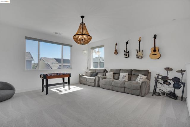 You won't want to miss this amazing home in the desired RIVER ISLANDS community with over 3700 sq. ft. of living space. The first floor features a jr suite with its own FULL bathroom and separate office (which could be used as a 6th bedroom) half bath and large open kitchen which opens up to a family/dining area with a separate den/formal dining area on the side, venturing upstairs you have a large loft, another jr suite with its own bathroom, two large bedrooms that share the 4th full bathroom and a large primary retreat with a lake view, soaking tub, walk in shower, double vanities and a walk in closet. This home has leased solar that is FULLY PAID for the next 21 years, smart home features (Leviton/Alexa) upgraded lighting fixtures and automatic blinds on all windows. All this on a spacious lot with a tandem 3 car, fully epoxied garage across from a brand new park. Imagine enjoying your evening playing cricket or soccer right across the street. Come home to your private backyard with a California room, retractable awnings, outdoor sink, patio and eating area perfect for entertaining. Call us today for a private tour!!!!