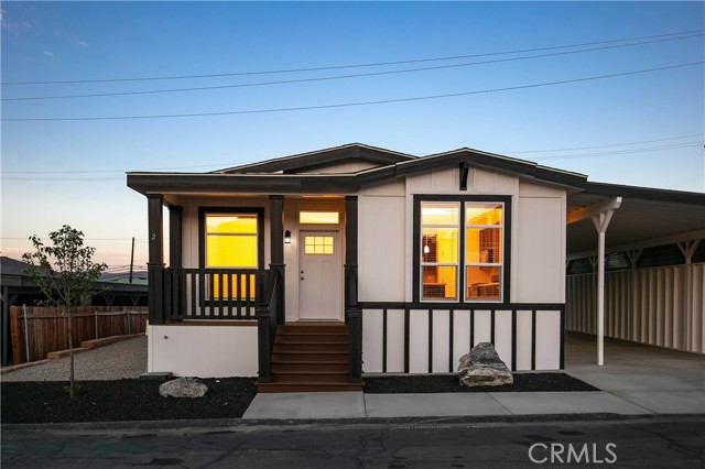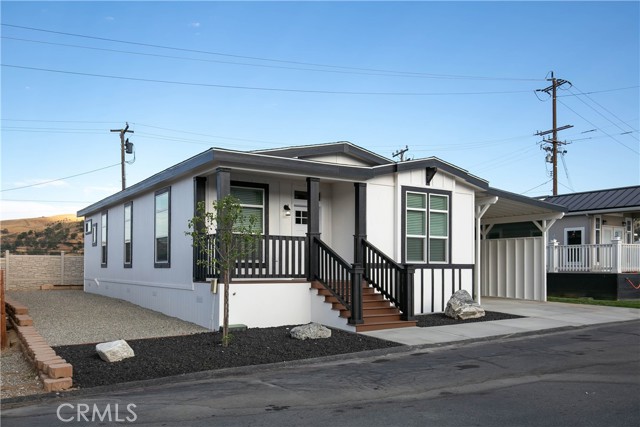 Your Mountain Haven. Step into a world of tranquility and modern comfort with this brand new, never occupied, 2025 Champion Skyline Manufactured Home. Situated in a tranquil mountain setting under wide-open skies, the well-maintained Oakridge Mobile Home Park offers a picturesque backdrop for your new life, with paved roads and neatly kept surroundings. At the heart of the home is a relaxing living room providing a dramatic focal point. A modern, open kitchen with sleek dark cabinetry complements light countertops and stainless-steel appliances await culinary adventures. Pendant lights cast a warming glow over the central island, creating an inviting atmosphere enhanced by the rustic wood design flooring. The bathroom combines practicality and style, featuring a double sink vanity with dark cabinets and modern fixtures. Step into the double-sized, glass-enclosed shower, bathed in natural light from sliding windows above. Rustic wood-design flooring adds a touch of warmth. A spacious laundry room with upgraded cabinets is ready to handle everyday needs. Complete with forced-air heating and air conditioning, the home is constructed to meet or exceed Energy Star compliance, ensuring energy efficiency and sustainability. Lanscaping, upgraded carport/garage and custom shed complete with electricity. Professionally installed within this beautiful community, this residence offers a harmonious blend of modern comfort and serene mountain living. More than just a house; it is a sanctuary waiting to welcome you. Come, experience life within these walls, and create a beautiful future. A one-year warranty is included.