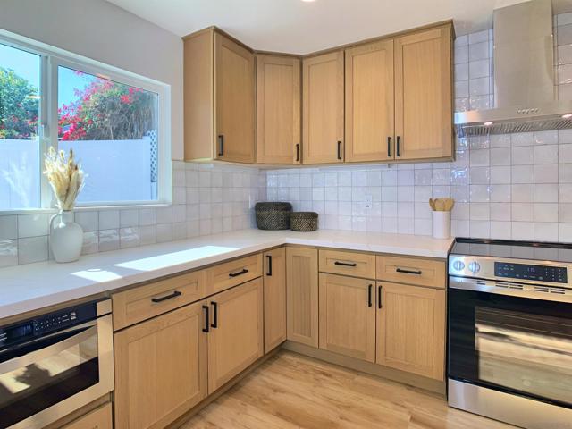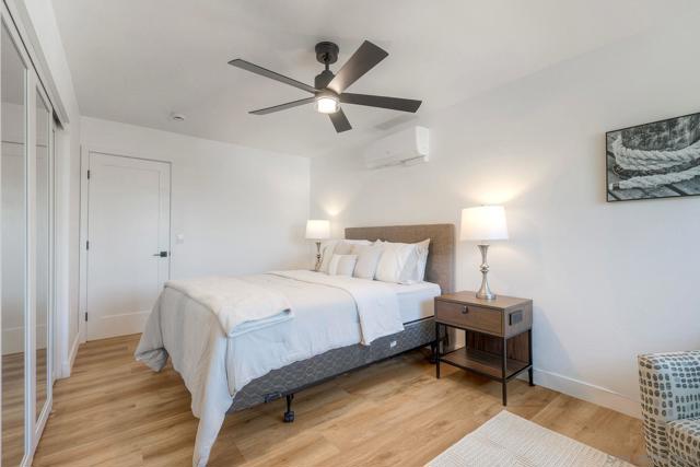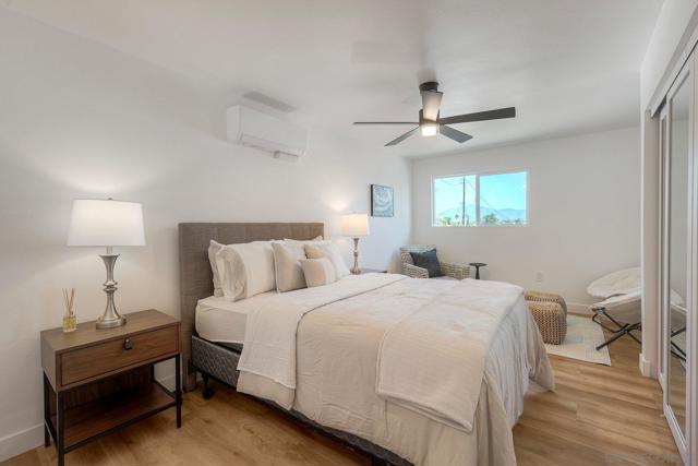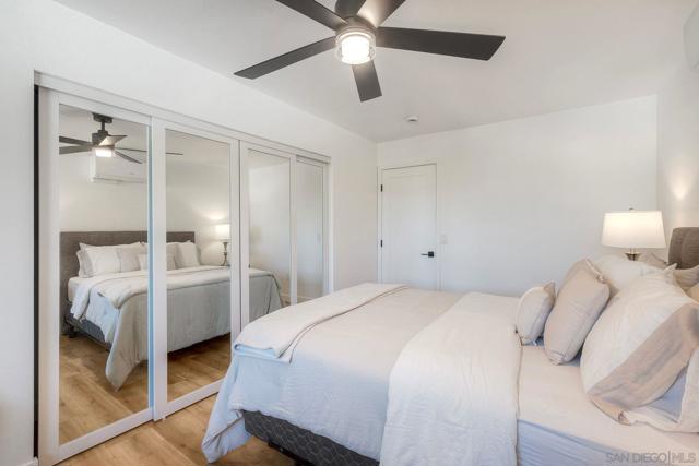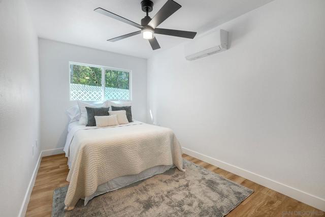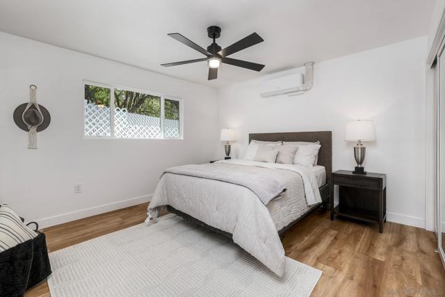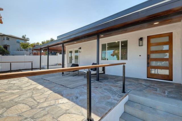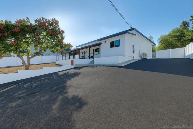 Discover this beautifully renovated, turnkey home where pride of ownership shines inside and out. Every detail has been updated—from new paint, trim, and doors to modern vinyl flooring and energy-efficient dual-pane windows. The open layout fills with natural light and flows into a stunning kitchen featuring quartz countertops, shaker cabinets, tile backsplash, and a full suite of new stainless steel appliances, including a slide-in range, built-in microwave, dishwasher, and refrigerator with water and ice. Both bathrooms offer floor-to-ceiling tile, new vanities, mirrors, and bathtub with sliding glass enclosure. Each bedroom enjoys its own mini-split system for personalized comfort, plus wood-framed mirrored closet doors. Step outside to a massive flagstone patio perfect for entertaining or relaxing with panoramic city and mountain views. Located on a quiet street in the heart of Lemon Grove—just minutes to freeways, shopping, schools, and downtown San Diego—this property combines suburban tranquility with unbeatable convenience. The driveway and street are scheduled to be paved within the week. Pictures of the driveway have been digitally enhanced to show what the driveway will look like once completed.