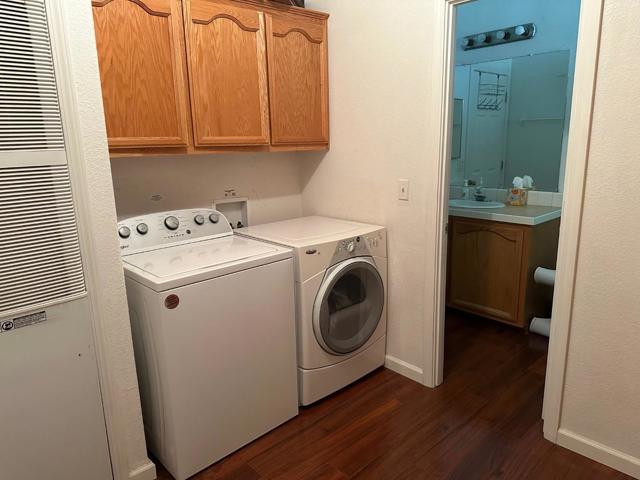 Move right in to this charming 2 Bedroom, 2 Bathroom home located in the vibrant city of Livermore. Offering 1,300 square feet of living space, this residence is designed for comfort and convenience. The kitchen is well-equipped with modern appliances, including a dishwasher, garbage disposal, microwave, and a gas range for culinary enthusiasts. The home features beautiful hardwood flooring throughout, adding warmth and elegance to the space. Essential amenities include central AC and central forced air heating, ensuring year-round comfort. Massive Primary Suite has Double Vanity and Large soaking Tub for relaxation. Large laundry room with washer and dryer included. Centrally located with easy access to downtown, Hwy 84, and I-580. Cool off on those hot days in the Park Swimming Pool. Experience the comfort and convenience of Livermore living!