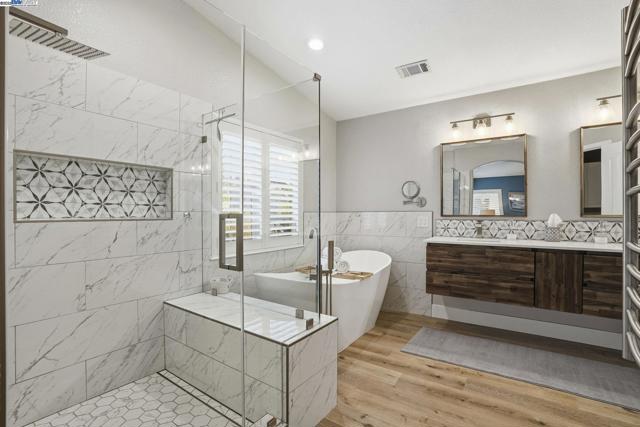Welcome to 1622 Altamont Circle — a stunning, highly upgraded home offering modern luxury and exceptional flexibility in one of Livermore’s most desirable neighborhoods. This rare floorplan includes a private **in-law suite** complete with its own living room, kitchenette, and private yard — ideal for extended family, multi-gen living, guests, or rental potential. The gourmet kitchen features **Thermador appliances** and overlooks open-concept living spaces appointed with **luxury vinyl plank flooring**, **wood stairs with upgraded railing**, and **LED recessed lighting** with dimmers. The spacious primary suite feels like a spa retreat, offering a freestanding soaking tub, glass shower, and dual vanities.Enjoy premium smart-home features including **Nest thermostats**, **wired smoke & carbon monoxide detectors**, and a **smart sprinkler system**. Entertainment lovers will appreciate the built-in **5.1 home theater speaker system*Step outside to your private resort-style yard with a **solar-heated pool** and **variable-speed pump** for energy efficiency, plus a **Hot Spring XL saltwater spa** — perfect for year-round relaxation.