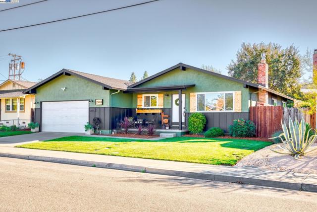 Welcome home to this beautifully updated single story home featuring 3 spacious bedrooms and 2 remodeled baths. The lush front lawn and inviting front porch set the tone for what's inside. Step into the welcoming living room with hardwood floors, a cozy fireplace & a large picture window that fills the space with natural light. The open eat-in kitchen offers generous counterspace, a front facing window, and seamless flow to the dining area. from here, step down into the expansive family room, perfect for entertaining with a shiplap accent wall and built-in surround sound for movie night or relaxing evening. The primary suite features a newly updated bathroom and a large window with plenty of natural light. Secondary bedrooms feature custom molding and stylish shiplap details. Enjoy the outdoors in a spacious backyard with a covered patio, mature trees, and plenty of green lawn for play or gardening. Move in ready and full of updates including a 2 year young roof and much more this home combines comfort, style, and functionality in every detail. Conveniently located to great schools, trails, Livermore's Downtown, shopping, dining, ACE train and Livermore Wine Country!