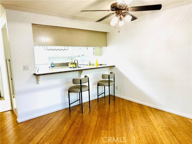 This Serene & Peaceful Community offers a soothing Garden Setting with a sparkling fountain and tree lined breezeways. This 2 Bedroom 2 Bath unit offers a warm and inviting living space with a fireplace, bamboo flooring and natural light throughout. The Large Master Bedroom features a Remodelled Master Bath and Upgraded Closet Doors. The Kitchen is bright and spacious with a Granite Countertop. Relax on your private shaded balcony or in the Community Spa. Enjoy AC on hot summer days, the In Unit Laundry plus a New Hot Water Tank installed in 2024 and One Assigned parking Space plus plenty of Guest Parking outside of Gate. The HOA covers the cost of your Water & Trash and provides an Elevator so no more taking the steps. This Beach Close Unit is close to all that Long Beach has to offer including the Aquarium, The Queen Mary, The Convention Center, restaurants, shopping, bars and coffee shops!