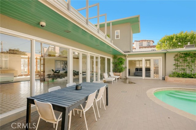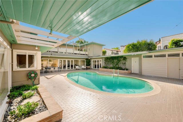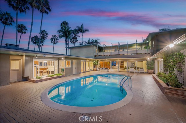 Among California’s most distinctive waterfront residences, this iconic Mid-Century Modern estate on Naples Island stands as both an architectural treasure and a piece of Long Beach history. Designed by acclaimed architect George M. Montierth, the home was originally commissioned as an executive retreat, created to entertain corporate guests drawn to Long Beach during the city’s thriving mid-century era. Its grand scale, dramatic design, and commanding waterfront presence reflect that legacy of hospitality and prestige. Perfectly sited at the convergence of Naples Canal, Rivo Alto Canal, and The Colonnade Canal, the residence captures sweeping views of Alamitos Bay and The Peninsula from one of the island’s most sought-after locations. A private marina spans 135 feet of open-water frontage and includes a 35-foot U-shaped slip with a 13-foot beam—an extraordinary amenity for yachtsmen and water enthusiasts alike. The 6,182-square-foot home is centered around a serene courtyard with a swimming pool, offering seamless indoor-outdoor living. A soaring 20-foot entry sets the stage for dramatic entertaining, leading to a paneled formal living room with marble fireplace and walls of glass overlooking the water. A full walk-in wet bar, elegant dining room, and expansive gathering spaces recall the home’s original purpose as a setting for distinguished entertaining. Two generous primary suites provide luxurious retreats—one with its own marble fireplace—both with walk-in closets, vanity rooms, and spa-inspired baths. Additional highlights include a private guest house with full bath, a workshop, and a motor court accommodating up to 6 cars. Positioned across five legal lots, including three waterfront parcels, the estate offers 112 feet of water frontage and exceptional versatility. Whether preserved as a Mid-Century showpiece, reimagined as a contemporary masterpiece, or developed anew, it represents one of the rarest opportunities on Naples Islands. Recent updates include a new roof, fresh paint, resurfaced upper deck, and a newly completed seawall, ensuring both beauty and structural integrity for years to come. A true legacy estate, this home embodies the elegance of its mid-century origins while offering unmatched potential on one of Southern California’s most prestigious waterfronts.