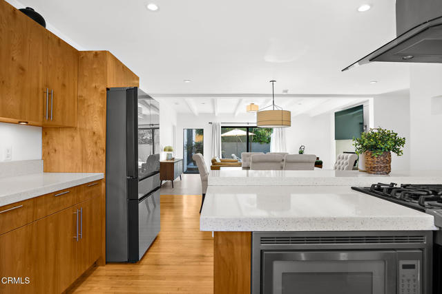 Welcome to 1881 Tulane Avenue, a stunning blend of modern design and classic comfort in the heart of Long Beach's highly desirable Los Altos neighborhood. This beautifully updated 3 bedroom, 2 bath home sits on a tree-lined street, exuding warmth, style, and functionality at every turn. The front landscaping and inviting patio create an ideal space for morning coffee or evening gatherings. Inside, you'll find a sleek minimalist aesthetic highlighted by rich hardwood finishes, polished concrete floors, dramatic beamed ceilings, large living room fireplace and an abundance of natural light that fills each room. The spacious bedrooms offer flexibility and comfort, while the primary suite impresses with soaring 10-foot ceilings, a custom walk-in closet, and a luxurious spa-inspired bath. The private backyard is perfect for entertaining or unwinding, featuring a mix of lush grass lawn, hardscape patio areas, and room to play or dine under the stars. Additional upgrades include new garage door, fresh exterior and interior paint, central AC/heat, custom blinds, inside laundry, and modern irrigation system. Conveniently located near CSULB, top-rated schools, local beaches, shopping and dining, this exceptional home truly captures the essence of contemporary Southern California living.