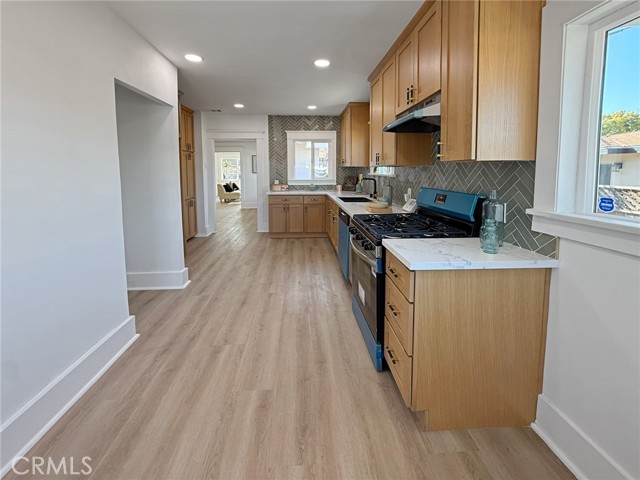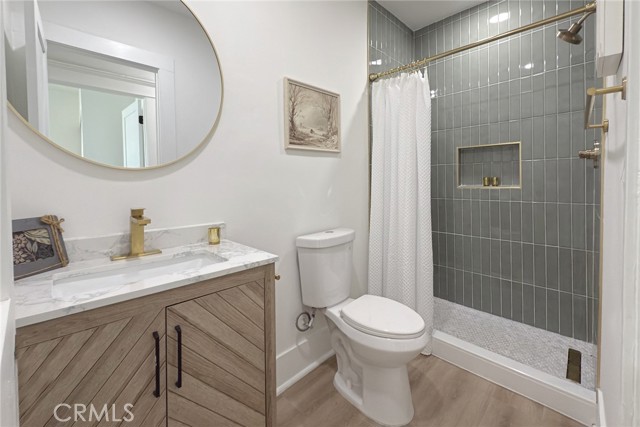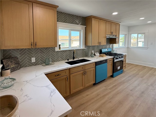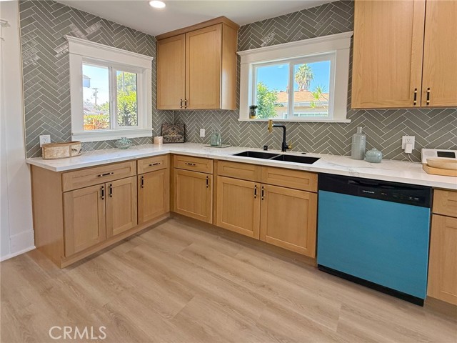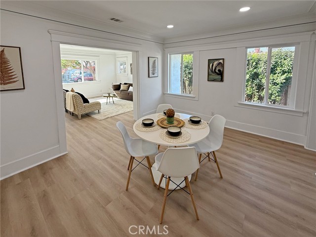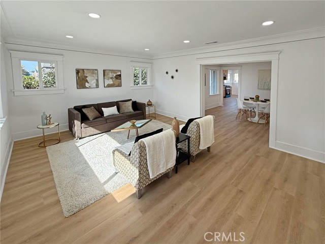 Tucked behind charming, low-maintenance front and back yards in the heart of Long Beach, this beautifully updated 3-bedroom, 2.5-bathroom home seamlessly combines coastal charm with modern living. Just minutes from the beach, Belmont Shore, and Downtown Long Beach, you’ll be surrounded by some of the city’s best restaurants, cafés, boutiques, and nightlife—while still enjoying a peaceful neighborhood atmosphere that offers both privacy and convenience. Step inside to find a bright and inviting interior where the living and dining areas are filled with natural light, featuring large windows, recessed lighting, and gorgeous wood-style floors that flow throughout. The galley-style kitchen impresses with crisp white cabinetry, sleek black hardware, modern countertops, and brand-new appliances, blending style and functionality for everyday living. Each bedroom is generously sized and filled with natural light, while the primary suite features its own ensuite bathroom with a mid-century inspired vanity and fixtures, preserving the home’s timeless character. The spacious backyard is perfect for entertaining, gardening, or relaxing outdoors. A large detached garage provides abundant space for vehicles, storage, or even a potential workshop, and the extended driveway easily fits an additional 3–4 cars, ideal for guests or multiple vehicles. Whether you’re searching for your first home or a turnkey investment property, this Long Beach coastal gem offers comfort, character, and a prime location—all in one move-in-ready package.