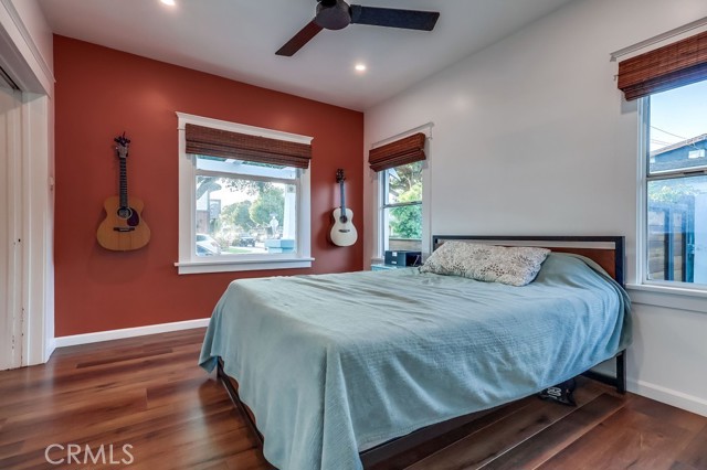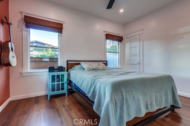 This early-century Craftsman home has been immaculately remodeled and features an accessory dwelling unit (ADU), perfectly situated in the heart of the vibrant "Retro-Row."The home showcases the timeless appeal of Craftsman style with its classic pitched roof, original hardwood floors, unique archways, and double-hanging windows. Upon arrival, the inviting red door and covered front porch set the tone for relaxation—ideal for a porch swing and a morning cup of coffee. Inside, a rustic brick fireplace welcomes you, complemented by abundant natural light streaming through multiple windows. The custom archway leads to a formal dining room, which connects to the kitchen, a cozy breakfast nook, and an additional family room. Both bedrooms are generously sized, with the master suite featuring an expansive walk-in closet to accommodate your storage needs. The long driveway easily accommodates parking for at least four vehicles, ensuring ample space for residents and guests alike. Out back, you'll find a beautifully landscaped yard perfect for entertaining or relaxing in privacy. Well-manicured lawn and patio space are ideal for barbecues or quiet evenings under the stars. Newly built one-bedroom ADU with dedicated kitchen area provide luxury living or rental income with nicely appointed fit and finishes.