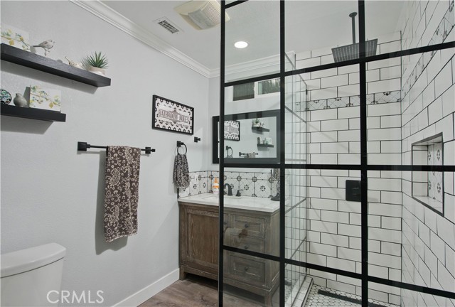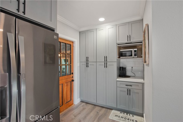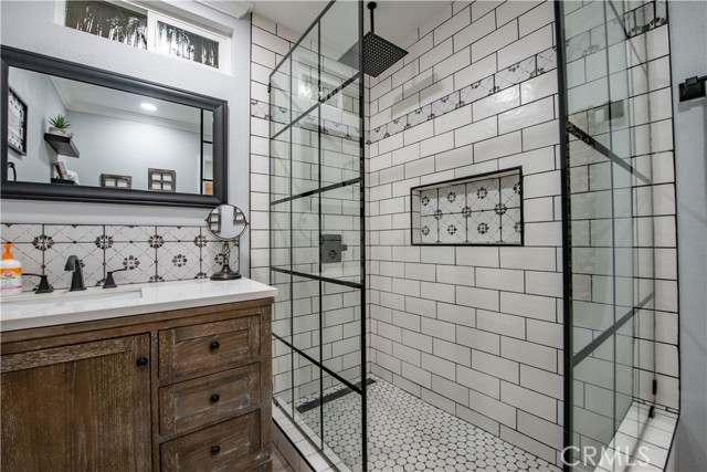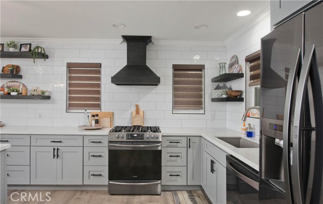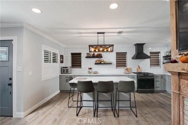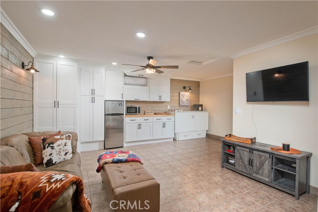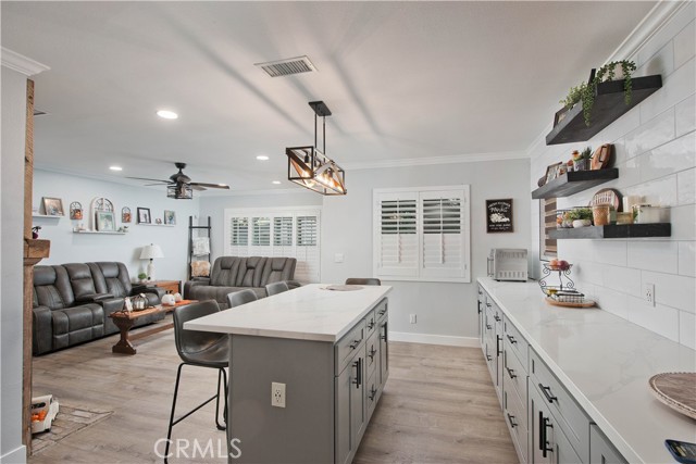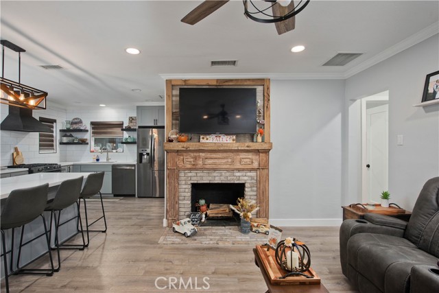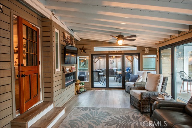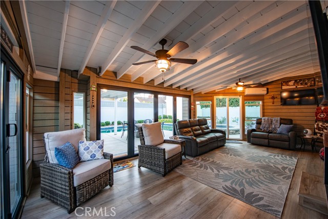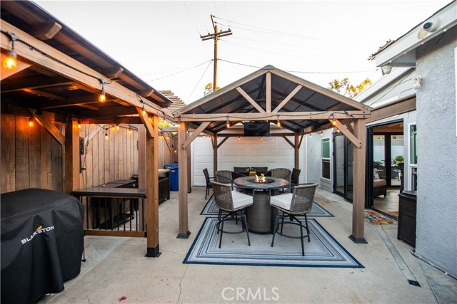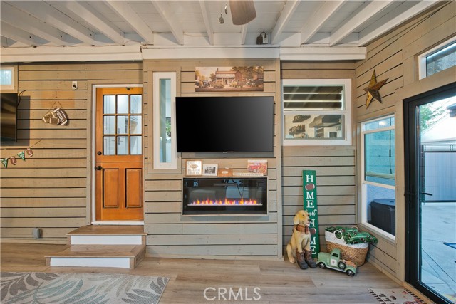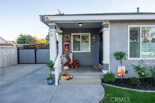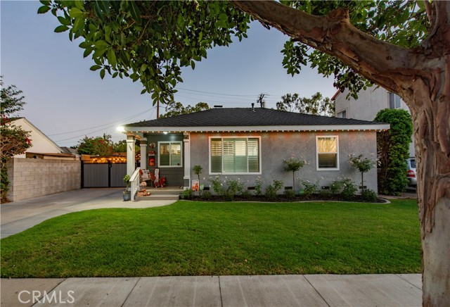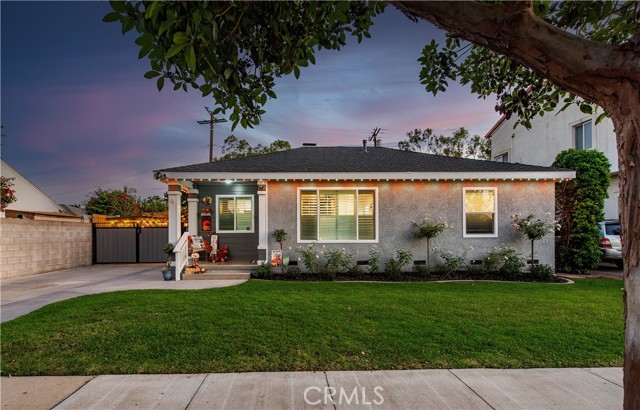 Welcome to this beautifully renovated single-story home located in Long Beach’s highly desirable South of Conant neighborhood. Offering a total of 1,644 sq.ft. of living space, this property includes a thoughtfully upgraded main home, a versatile enclosed patio, and a garage converted into a fully functional studio.The main home offers 969 sq.ft. with 2 bedrooms and 2 bathrooms. From the moment you arrive, you’ll be charmed by the home’s inviting curb appeal, complete with a front porch, fresh exterior paint, newer windows and fascia board and beautifully landscaped front and back yards. A brand-new roof installed in 2025, updated gutters and downspouts, and a steel-framed driveway gate add to the home’s durability and peace of mind. For year-round ambiance, the decorative lighting system, operated via wifi, illuminates both the front and back of the home. Inside, a warm and inviting interior highlighted by newer luxury vinyl flooring throughout, crown molding, high baseboards, recessed lighting, and plantation shutters. A cozy fireplace with a barnwood beam mantle anchors the living area. The custom kitchen is a true showstopper with a large center island, quartz countertops, subway tile backsplash, stainless steel appliances, modern cabinetry with pots-and-pan drawers, and a pantry with a built-in coffee station. The hallway bathroom is thoughtfully updated with a modern farmhouse-industrial style, decorative tile accents, and a sleek vanity, while one bedroom enjoys a private en-suite bath. Energy-efficient features include solar panels, newer tankless water heater, newer insulation, and a cool roof attic fan. Central heating and air conditioning ensure year-round comfort. The 315 sq.ft. enclosed patio expands the living space with accordion glass walls, shiplap accents, a modern fireplace heater, ceiling fans, and its own AC/heat split system—perfect for year-round enjoyment. The garage has been converted into a 360 sq.ft. studio complete with a bathroom, kitchenette with custom cabinetry, its own AC/heat split system, and dedicated laundry—ideal for guests, a private workspace, or rental potential. Step outside to your private backyard retreat with two pergolas, a covered patio, and a sparkling pebble tec pool and spa. Set on a tree-lined street close to shopping, dining, schools, and Long Beach Airport—with the beach and 405 freeway just minutes away—this home combines modern amenities, energy efficiency, and flexible living spaces.