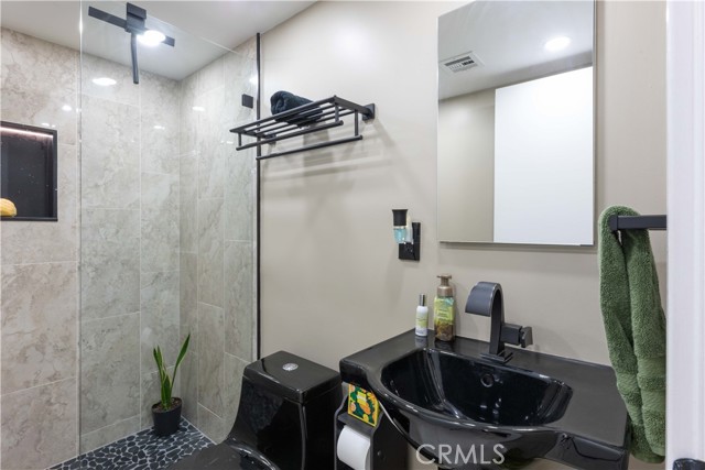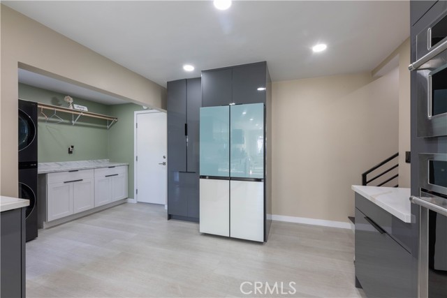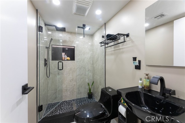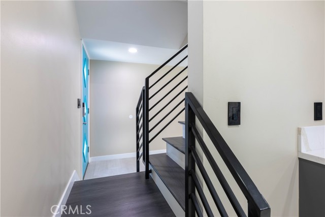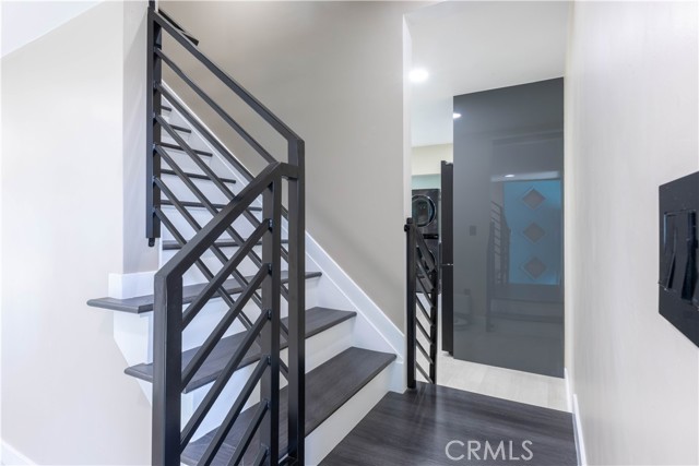 Experience luxury living in this fully renovated four-bedroom, four-bath modern home with mid-century accents in the highly sought-after El Dorado Park Estates neighborhood of Long Beach. Designed with a seamless open floor plan, this turnkey residence showcases high-end finishes, clean lines, and contemporary amenities throughout. The chef-inspired kitchen offers abundant storage, built-in appliances including a gas cooktop with downdraft ventilation, high-gloss self-closing cabinets, pullout drawers, and floating glass shelving—perfectly blending style and function. The living room features a sleek gas fireplace and a trifold glass stacking door that opens to the backyard, creating effortless indoor-outdoor living. The downstairs private suite includes a three-quarter bathroom, ideal for guests or multigenerational living. Upstairs, the grand primary suite is a true retreat with a gas fireplace, walk-in closet, private quarter bathroom, and a luxurious spa-style ensuite transformed from the home’s fifth bedroom. Enjoy dual floating sinks, a soaking tub, and an extended shower with multiple showerheads—all highlighted by custom marble, Bluetooth speakers, and designer lighting. The upstairs also includes a full bathroom with floating cabinets, and one bedroom with a private three-quarter ensuite for additional comfort. The entertainer’s backyard is a true oasis featuring a heated saltwater pool with Baja shelf and spa, custom lighting, a tranquil koi pond, synthetic low-maintenance turf, gated RV parking, and a large custom-built shed. Additional highlights include a spacious attic with dropdown ladder, paid-off solar, and proximity to Newcomb Academy (K–8), parks, restaurants, and freeway access. Every detail has been curated for a lifestyle of modern sophistication, mid-century charm, and effortless living. Close to the 605, 5 and freeways and centrally located between Los Angeles and Orange Counties.