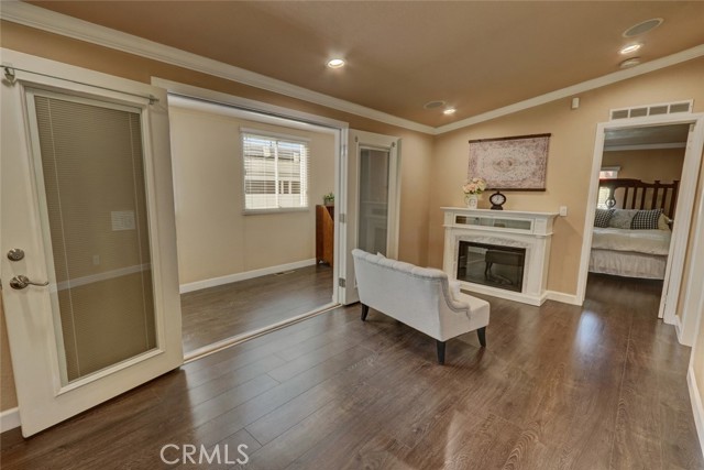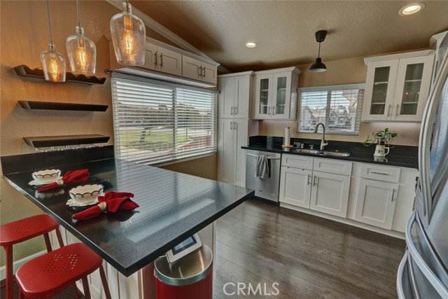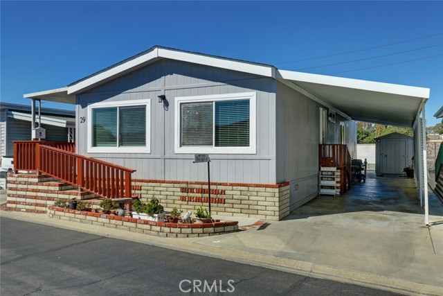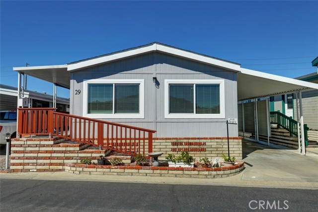 Beautifully Remodeled Home located in Royal Oak Mobile Park. Royal Oak is a Small Senior Community, 55+ located in Los Alamitos. You'll definitely want to take a look at this Remodel with a Front Kitchen and a Sunroom adjacent the Living Area. The Living Area features a Skylight, Fireplace and 5' French Doors leading to the Sunroom. The Lovely Kitchen features a Breakfast Bar w/Pendant Lighting, White Shaker Cabinets, Glass Door Fronts, Stainless Steel Appliances and Quartz Countertops. Master Bedroom fits a King Size Bed, Walk-In Closet with Built-Ins and a Wall Mounted TV. Adjacent is the Master Bathroom with Walk-In Shower, Glass Shower Doors, Marble Vanity with Dual Sinks and Linen Closet. The 2nd Bedroom features a Double Closet with Built-Ins and Entry to the Guest Bathroom. Guest Bathroom features Tub/Shower Combo, Marble Vanity and a 2nd Door. Oversized Dining Room could also be used as a Family Kitchen. Recessed Lighting, Laminate Flooring and Blinds are featured throughout the Home. Wonderful added features is that both Bathrooms and Closets have auto entry lighting. Laundry Room with Stackable Washer/Dryer and Entry to the Carport area that features a Storage Shed. The Carport is a wonderful feature for Rainy Weather and just keeping your car out of the elements. The Backyard features a concrete pad with cover and overlooks Coyote Creek Park. Gorgeous Brickwork on the Exterior of the Home with an Extended Front Porch and Steps. Located near the City of Los Alamitos City Hall, Police Department, Senior Center, American Legion & Coyote Creek Park w/Bike Path leading to the Beach. Community is near shopping, 405 and 605 Freeways.