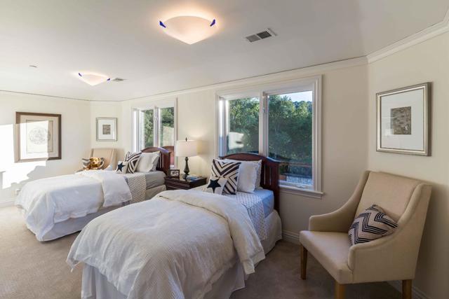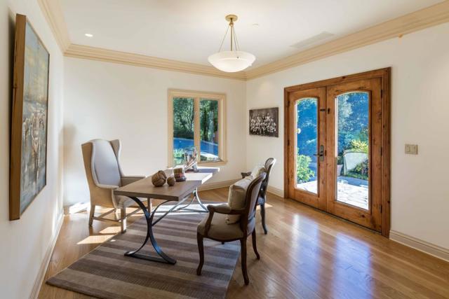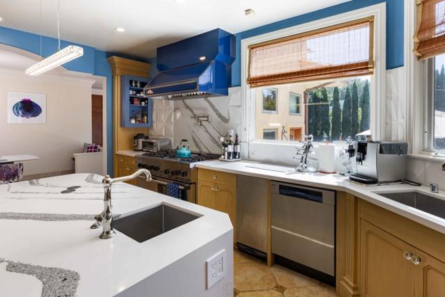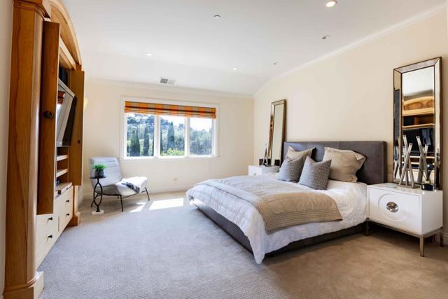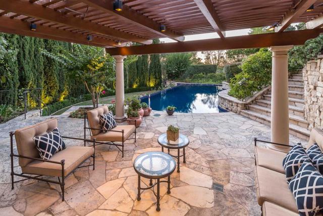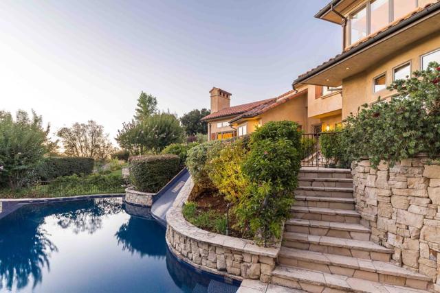 In this haven of 4.4 acres in Los Altos Hills, echoes of the Italian countryside unfold within a custom-built Tuscan estate. Impeccable details weave through more nearly 8,300 square feet of space, creating a tapestry of high-end luxury and craftsmanship. Nearly every lifestyle need is accounted for: expansive formal rooms for entertaining, a kitchen with top-tier appliances, two stylish home offices, a cinema-quality theater, a 2,200+ bottle wine cellar, a lounge, and more. Retreat to the primary suite with its own fireplace or the secondary suite with a kitchenette and private entrance. Outside, immaculate grounds provide an oasis of serenity with a cabana and stunning infinity pool. And though you will feel immense privacy within its gates, this home is just a short drive from downtown Los Altos, an esteemed country club, gorgeous nature preserves, and top-ranked Palo Alto schools (buyer to verify eligibility).