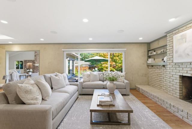 Tucked in a premier North Los Altos cul-de-sac, this warm and inviting single-level home blends classic appeal with modern updates, just minutes from the Village's shops, dining, and acclaimed Los Altos schools. Freshly updated and move-in ready, the home features elegant crown moldings, rich hardwood floors, and a rare 600-square-foot family room with vaulted ceilings and fireplace. Designed for effortless indoor-outdoor living and entertaining, the spacious living and dining area includes a cozy fireplace and built-in speakers. The well-appointed kitchen offers stainless steel appliances, wine refrigerator, abundant storage, and seamless flow to the living spaces. Three generous bedrooms include a serene primary suite with a built-in desk and a beautifully updated ensuite bathroom. The lush, professionally landscaped grounds create a private, picturesque setting that truly blurs the line between indoor comfort and outdoor enjoyment. Additional highlights include an oversized attached 2-car garage with a laundry area, and ample storage, Culligan soft water & drinking system, central air conditioning, secure oversized mailbox, a garden shed whose paint and roof shingles match those of the house, and gutter guards that keep the gutters clog-free year-round. Welcome home!