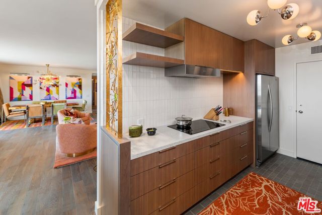 Luxury Mid-Century Modern Penthouse with Stunning City Views. Discover an exceptional penthouse in a prime block of Doheny, offering unparalleled city views and a brand-new, fully furnished interior. Designed by Tim Barber Architect and Associates, this meticulously crafted residence boasts over half a million in upgrades, featuring a completely reimagined kitchen, baths, and an expansive Master Suite with a large closet. The open-concept floor plan is enhanced by modern Fleetwood sliders and aperture windows, providing a seamless indoor-outdoor flow while ensuring a quiet, city-proofed ambiance. sophisticated redesign, alongside top-of-the-line appliances that complete the gourmet kitchen. Set within an incredible full-service building, residents enjoy 24-hour concierge and security, tennis courts, pools, a Jacuzzi, and a host of luxury amenities. With an unbeatable walkable location, this mid-century modern masterpiece offers the perfect blend of elegance, convenience, and contemporary design.