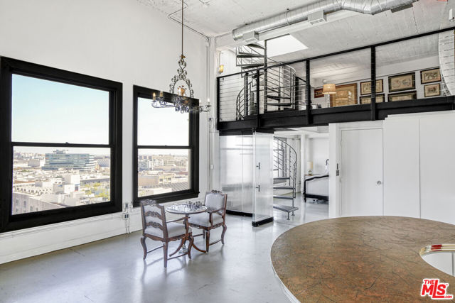 New York style Two-story penthouse unit with views and private roof deck in the historic Higgins door man building. Offers a rare opportunity to own a truly unique private residence in the heart of downtown Los Angeles. Designed with soaring high ceilings, Eastern views and a live/work loft-style layout, the space blends dramatic architecture with flexibility and character. Boasting breathtaking panoramic views including direct exposure overlooking the beautiful Saint Vibiana Cathedral. The home features a large private rooftop deck (accessible through the unit) perfect for entertaining or relaxing with panoramic city views. Inside, you will find a striking mix of Art Deco design and aviation-inspired details that make this residence truly one of a kind. The unit is located in the Higgins Building which has been designated as a Historic-Cultural Monument and is covered under the Mills Act. Perfectly situated close to Grand Central Market, fine dining, entertainment, museums, concert halls, and subway station. This is more than a home. It's a lifestyle rooted in history, design, and vibrant urban living.