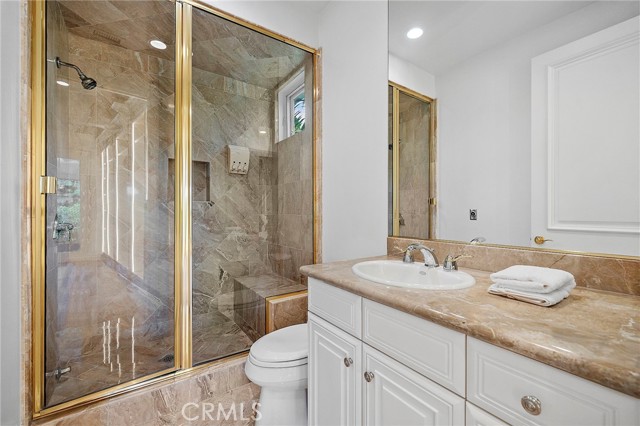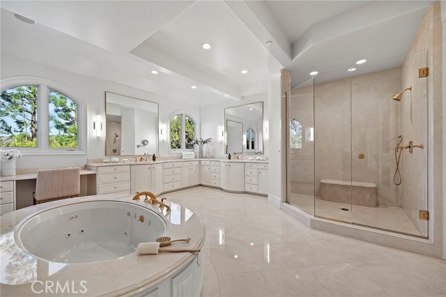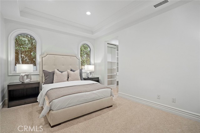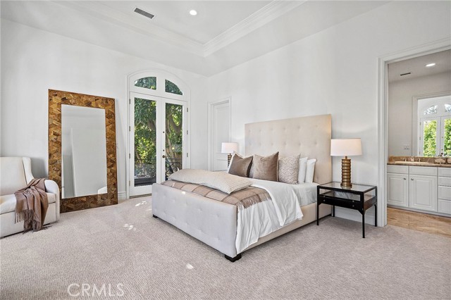This superbly modernized approximately 7,070 square foot guard-gated Bel Air Crest residence showcases refined materials, exquisite finishes, and impeccable decor throughout. Breathtaking grand entry with a chandelier suspended from the cathedral coffered ceiling welcomes guests to five en-suite bedrooms and six-and-one-half baths offering the epitome of luxury and elegance. Enjoy the lavish chef-caliber kitchen with designer-selected appointments, high-end appliances, custom cabinetry, oversized center island, spacious pantry, and ample space to entertain. The formal living room and dining room are ideal for hosting both large crowds and intimate gatherings. An impressive master wing offers a fireplace, dual custom Clive Christian closets, and relaxing spa-inspired bath complete with sauna/steam and beverage station. Three en-suite bedrooms are located on the second floor as well, and one en-suite bedroom and office are conveniently located on the main floor. Discover tranquil grounds that are beautifully landscaped and highlighted by an outdoor patio, pool, and spa. Don’t miss the exceptional quality and rare beauty that is being offered in the coveted guard-gated community of Bel Air Crest.