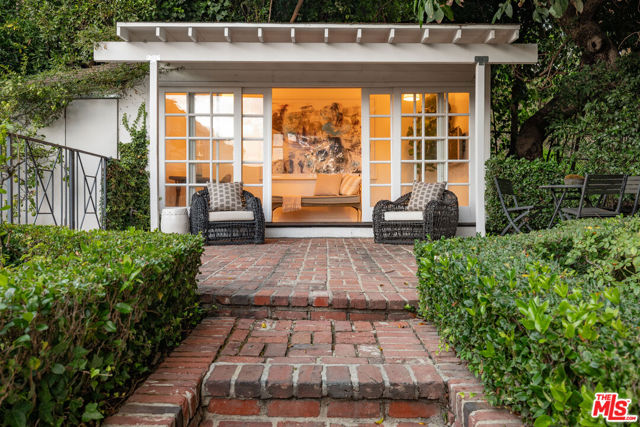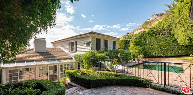 GORGEOUS TRADITIONAL IN PRIME SUNSET PLAZA. Tucked away at the end of a quiet cul-de-sac, this timeless traditional estate blends classic sophistication with modern refinement. A private driveway leads to a sun-drenched residence surrounded by lush greenery and complete privacy just moments from the heart of the Sunset Strip. Inside, a sweeping staircase introduces the home's graceful interiors. The expansive living room captures picturesque city views and flows seamlessly into the formal dining room. A bright sun-room offers the perfect setting for both intimate gatherings and large-scale entertaining. At the heart of the home, a sleek custom Minotti kitchen impresses with concealed appliances, bespoke cabinetry, and abundant storage delivering a clean, contemporary aesthetic. The main level features two bedrooms, while the upper floor hosts two spacious ensuite bedrooms, including a luxurious primary suite with dual walk-in closets and city vistas. Outdoors, discover a private entertainer's paradise - expansive terraces, a resort-style pool with multiple lounging areas, and a chic cabana enveloped by mature landscaping. Perfect for serene relaxation or glamorous entertaining under the stars. A rare offering of elegance, privacy, and comfort in one of Los Angeles' most coveted enclaves, just minutes from world-class dining, shopping, and nightlife on the iconic Sunset Strip.