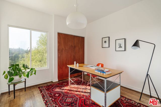 Ideally situated in the coveted Silver Lake hills, this thoughtfully designed and move-in ready home offers 4BR/4BA and sweeping west-facing views of the Hollywood Sign, Griffith Observatory, and city lights beyond. Bathed in natural light, the upper level features a bright and airy open-concept living space with a modern kitchen and charming breakfast nook, dining area, and expansive living room with custom cut-out bookshelf and fireplace. Large windows and an extended balcony capture stunning sunsets and panoramic views, while a private patio offers the perfect setting for entertaining or unwinding. Downstairs, a cozy family room/den and all four bedrooms offer comfort and flexibility. The spacious primary suite includes a large walk-in closet and a luxe ensuite bathroom with soaking tub, dual vanities, and separate shower. Three additional bedrooms and two more bathrooms complete the 2,396 sq ft layout- perfect for guests, a home office, or additional space as needed. Attached two-car garage is spacious with plenty of storage and room for projects. Unbeatable east side location just moments from all the best of Silver Lake, Echo Park and Los Feliz: the Reservoir, LAMILL Coffee, Botanica, L&E Oyster Bar and so much more are all right outside your door.