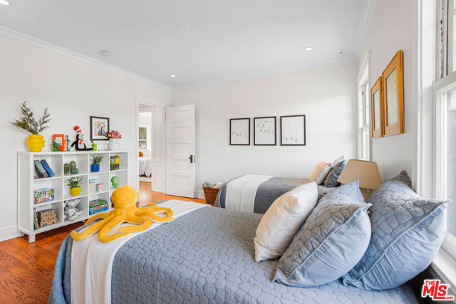 Move in ready contemporary Italian Mediterranean, perfectly located smack in the center of historic Lafayette Square. Completely remodeled "down to the studs" less than 20 years ago and kept pristine since! Filled with warmth, light, and character, this 6-bedroom (including 3rd floor built out attic loft), 4-bath offers the ideal blend of timeless Italian charm and comfortable American living. A wide, covered front porch invites you in, leading to bright, airy rooms and lovely details. The spacious layout comprises a sunroom, a generous office, and two en-suite bedrooms, including a serene primary suite with its own fireplace perfect for cozy evenings at home. A large upstairs balcony overlooks the neighborhood, ideal for a relaxing drink and greeting friendly, passing neighbors. A 3rd floor loft/child's bedroom/rec. room/office gives the home the feel of a large, 3-story Italian estate, complete with huge closet/storage area. Outside, discover a magical Tuscan / Mediterranean garden retreat bursting with life! Lemon, pomegranate, apple, apricot, blood orange, and fig trees are complimented by grapes, artichokes, rosemary, and cheerful morning glories. Dine under the grapevine-covered pergola, listen to the gentle fountain, or enjoy a friendly game on the Bocce Ball court. With a rare four-car garage and side garden this home offers both charm and practicality, an incredible place to grow up, retire or just live the LA lifestyle of indoor/outdoor entertainment with a dash of Italy!