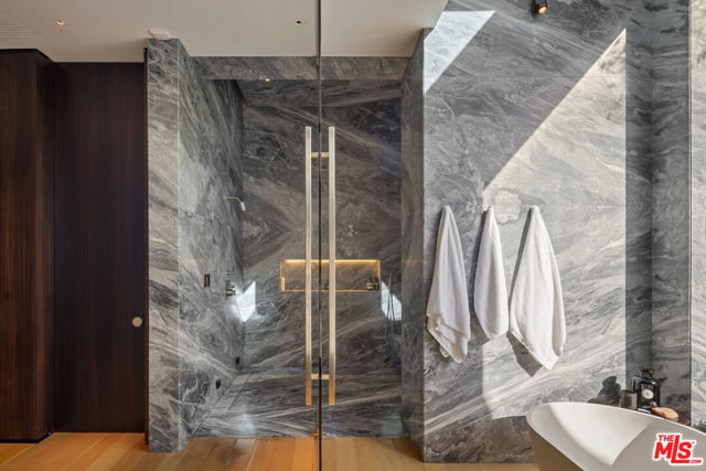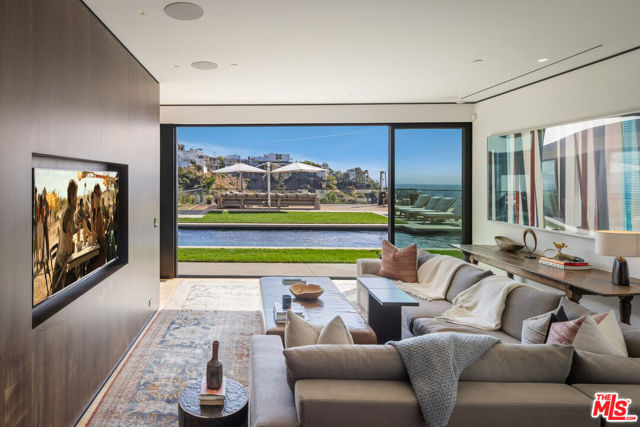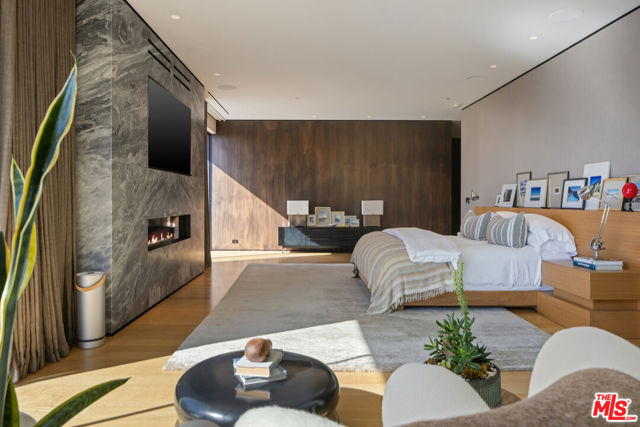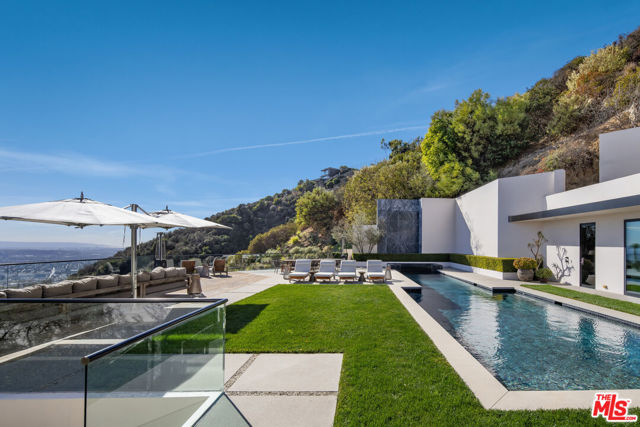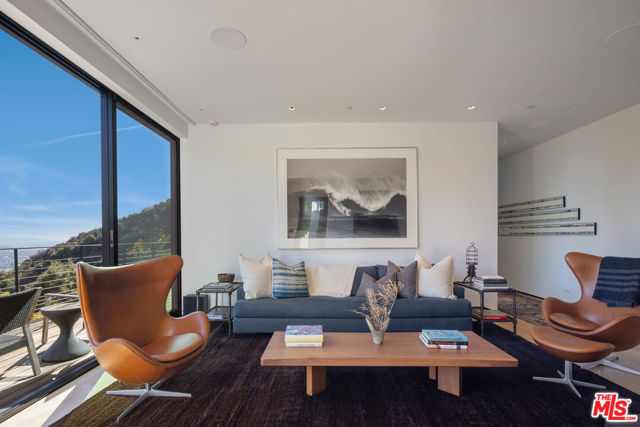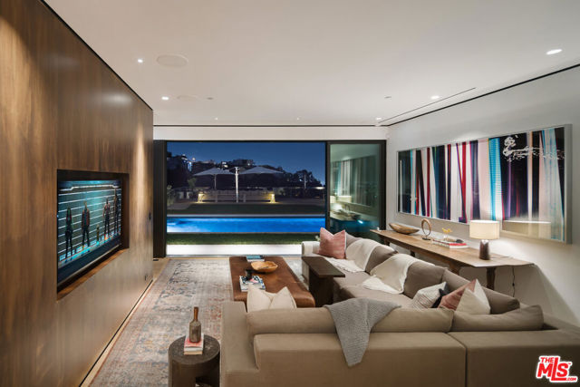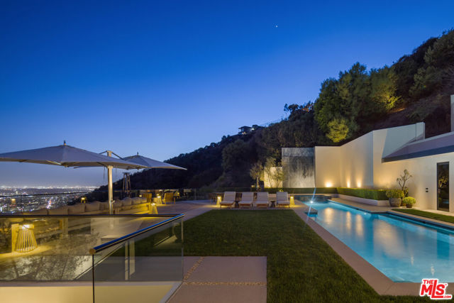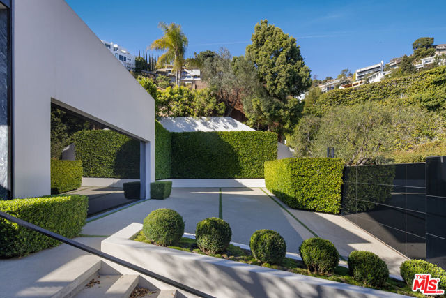 Tucked away in the prestigious Bird Streets, this private contemporary compound blends refined design with absolute privacy. Thoughtfully reimagined by the renowned AD100 firm Clements Design, the residence spans over 8,000 square feet on a generous 23,100-square-foot lot, offering a seamless indoor-outdoor lifestyle framed by sweeping city views through disappearing walls of glass.Light-filled living spaces include an airy great room with a striking fireplace and skylights that enhance the home's serene atmosphere. The chef's kitchen is equally impressive, outfitted with Miele appliances, an oversized island, WineMate-cooled wine wall, and a full butler's pantry.The primary suite is a calming retreat with a fireplace, motorized shades, direct access to the yard, and a spa-inspired bath featuring a soaking tub, glass-enclosed steam shower, and a custom walk-in closet. Designed for entertaining, the outdoor areas include an 80-foot pool with a dramatic marble waterfall, spa, multiple lawns, and a tiered deck with a thriving vegetable garden by Heart Beet Gardening. The lower level features a private guest suite, gym with separate entry, home office, and a state-of-the-art theater with lounge and bar. Additional highlights include a library with floating walnut shelves, secondary lounge with built-in bar, Crestron smart home system, and a resurfaced garage. Moments from the Sunset Strip and Beverly Hills, this one-of-a-kind estate offers the ultimate blend of luxury, privacy, and access to the best of Los Angeles.