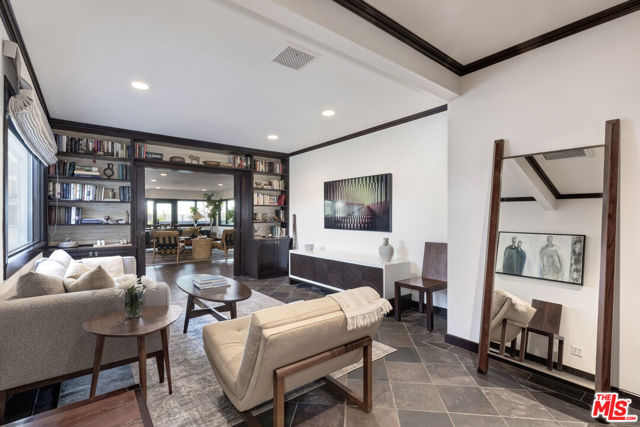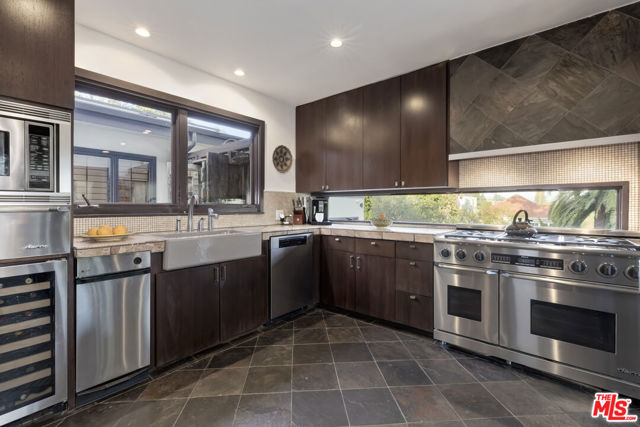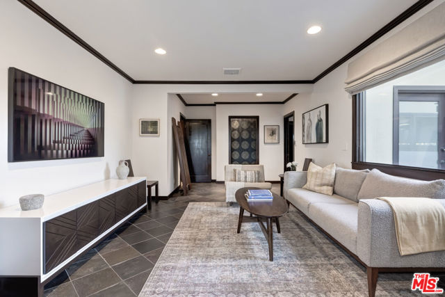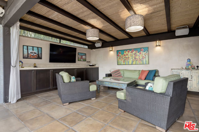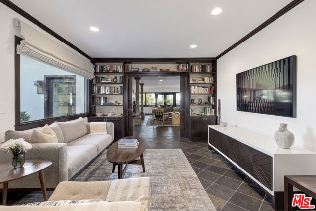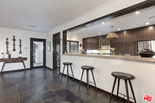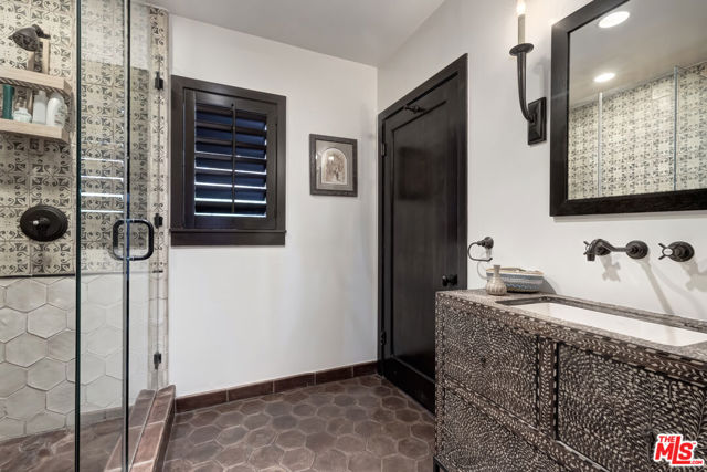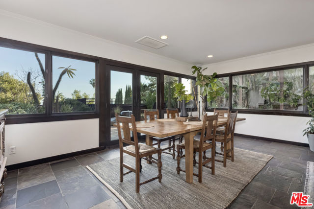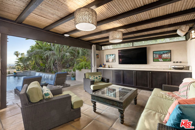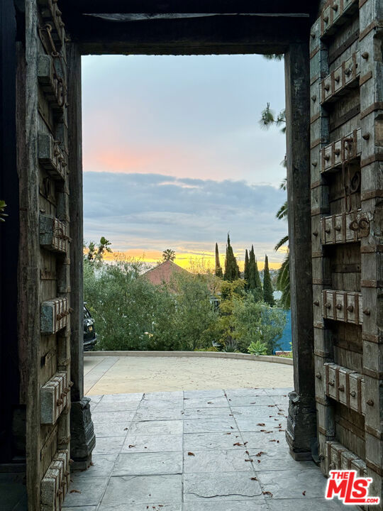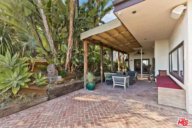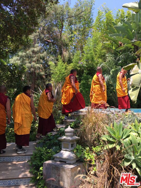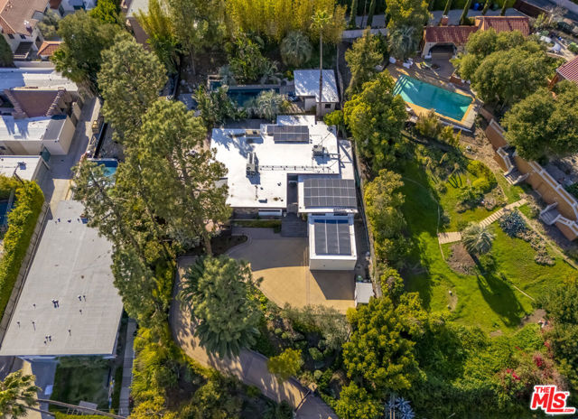 Perched high above the city in the Los Feliz hills, this Mid-Century modern sanctuary offers unparalleled privacy, tranquility, and elevated design. Gated and masterfully hedged, the residence is completely hidden from street view, nestled among lush, tropical landscaping that evokes the essence of an exclusive island retreat, yet remains just minutes from Griffith Park, the Franklin Strip, and Los Feliz Village. A favorite among well-known creatives and entertainers, this home has quietly played host to a roster of celebrated names, offering the kind of seclusion and calm rarely found in Los Angeles. As a further testament to its serene energy, the home was personally blessed by monks, infusing the space with a sense of peace and harmony. Inside, artisanal craftsmanship and refined materials shine. Custom millwork, antique details, and thoughtful design elements create a warm, sophisticated atmosphere. A light-filled great room flows effortlessly into expansive outdoor entertaining areas, framed by mature greenery, a sparkling pool, spa, and multiple lounge spaces. The chef's kitchen is a showpiece of form and function, outfitted with top-tier appliances and bespoke finishes. The primary suite is a haven in itself, featuring a spa-like bath and an oversized walk-in closet. A detached pool house cabana with an outdoor shower and half bath offers a perfect space for guests or peaceful solitude. The property also features 47 owned solar panels paired with a Tesla backup battery system, combining energy efficiency with cutting-edge sustainability. Additional upgrades include a newer roof with ember-resistant attic vents, as well as an electric vehicle charger. With a two-car garage, driveway parking for six, and seamless indoor-outdoor flow, this home was made for both grand entertaining and private relaxation.