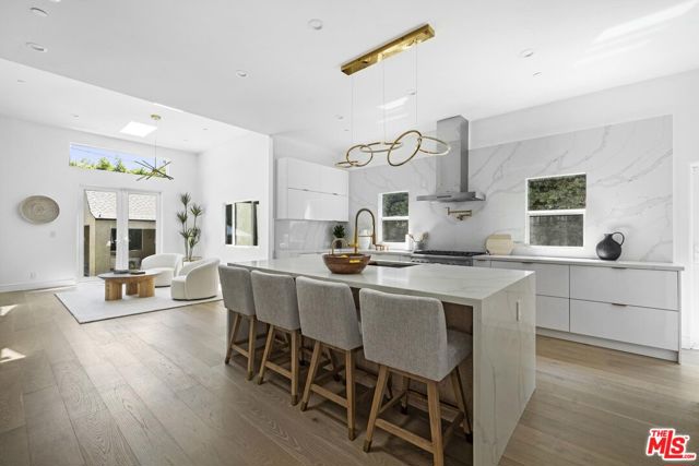 Built in 2024, this newly constructed, custom-designed architectural masterpiece is completely turn-key, welcoming you to the ultimate indoor/outdoor living experience with a luxurious modern design and impeccable craftsmanship. The home is an entertainer's dream with 10-12 foot ceilings and skylights throughout, a chef's kitchen featuring THERMADOR APPLIANCES, custom kitchen cabinets, and a coffee/tea station. This spacious home is drenched with light and windows, offering views of the lush landscaping and greenery throughout. The large master suite boasts a spa-like bathroom and a custom-designed walk-in closet, providing ample storage. All bedrooms have en-suite bathrooms and walk-in closets. The drought-friendly, low-maintenance landscaping includes artificial turf, decomposed granite, mature ficus, and olive trees, giving this home a compound feeling with much privacy, creating the perfect secluded retreat. Enjoy the backyard for al-fresco dining and entertain in the cabana, which offers ample seating, room for lounging, and a mounted TV. Additionally, there is storage above the cabana with stair access. Features include a SMART HOME system, security cameras, NEST thermostat system, high-end finishes, and engineered wood floors throughout. Located in prime WESTWOOD/CENTURY CITY, close to UCLA and in the highly rated WESTWOOD CHARTER ELEMENTARY school district, this home is within walking distance to many restaurants and shops. It offers easy access to Beverly Hills, Santa Monica, Brentwood, freeways, shopping, dining, malls, theaters, UCLA, and Rancho Park.