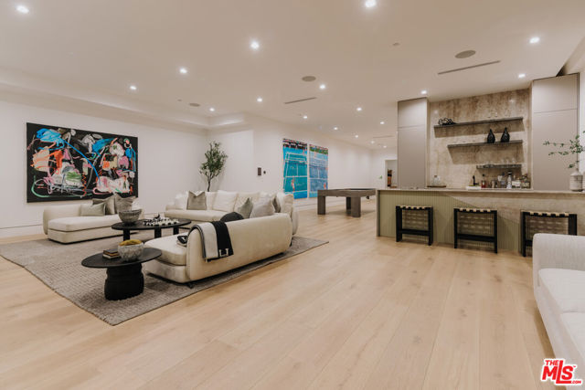 Hidden at the end of a long, gated drive, this expansive newly built estate sits on a rare Brentwood parcel that offers both exceptional privacy, scale, and connection to nature. With eight bedrooms and 12 bathrooms, the home is designed for luxury living without sacrificing comfort or function. The main level features generous open living spaces that connect seamlessly to the outdoors that include a sprawling lawn, oversized pool and spa, and multiple areas for dining, lounging, and entertaining. Inside, natural light floods through floor-to-ceiling windows, with views of the surrounding trees and greenery creating a continuous connection to the outdoors. Thoughtfully designed to accommodate both daily life and special occasions, the main level includes formal and informal living areas, a chef's kitchen featuring top of the line Mielle appliances and bespoke cabinetry, a junior primary suite, and a commanding office overlooking the trees. Upstairs, the primary suite offers a private retreat complete with sitting area, master bath, walk-in closet, and access to sprawling outdoor terraces. A private elevator and grand staircases lead to the ground level, featuring a home theater, gym and climate controlled wine room. Surrounded by mature landscaping and set far back from the street, the property feels quiet and protected, yet remains close to the vibrancy of Brentwood. 260 Canyon View is a rare opportunity to enjoy both privacy and convenience, all while experiencing the pinnacle of California's indoor outdoor living.