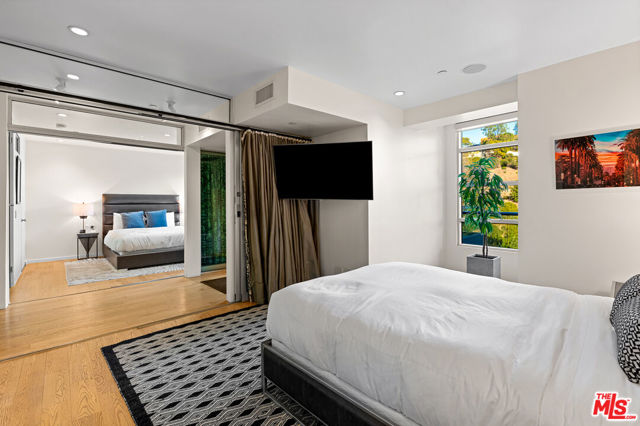 Iconic Hollywood Dell modern masterpiece. Designed by architect, Jay Vanos, with wall murals by R & B singer, artist & previous owner, Chris Brown. Nestled in an enchanting canyon cul-de-sac, the 2,800 sq. ft. home offers total privacy in close proximity to the 101 Fwy, major studios & Hollywood nightlife. Walls of glass along with soaring ceilings define interior/exterior spaces creating a breathtaking layout. An elevator provides access to 3 bedrooms, 3 bathrooms, multiple living areas, Boffi kitchen & baths with Bracht fixtures & a stunning primary suite featuring a large wet room with shower massage system & freestanding red tub. Enjoy resort-style living with beach-style saltwater pool & spa, waterfalls, lap swim jets, cabanas set in sand, a spectacular custom LED site lighting & colored LED light show as well as outdoor projector & screen, surround sound system, fire pits, entry/security system & cameras. Lot size 7.495 sq. ft.