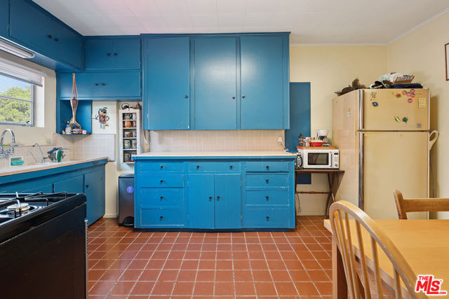 Welcome to 2847 Robertson, a truly unique opportunity to own a piece of Los Angeles history. This storied address was once the working studio and home of the legendary Rachel Rosenthal, one of the most influential interdisciplinary artists, performers, and teachers of the 20th century. The front half of the property is smartly partitioned into two distinct rooms, making it well-suited for two separate businesses or creative ventures. Behind this, there is a performance studio with 220-amp power and dramatic double-height ceilings. This studio space can easily function as a garage, accommodating up to four vehicles. Upstairs, there is a spacious studio apartment, a large patio, and an additional studio space. The studio apartment upstairs features a full kitchen, living room, and bathroom with incredible tree-top views. The additional studio offers exceptional natural light and could potentially be transformed into an additional residential unit. Recent improvements include brand new lighting and windows throughout, new roofs and a deck (2025), and major system updates: upgraded electrical panels (2023 & 2024), and new HVAC. Rarely does a live-work residence combine such versatility and historic provenance.